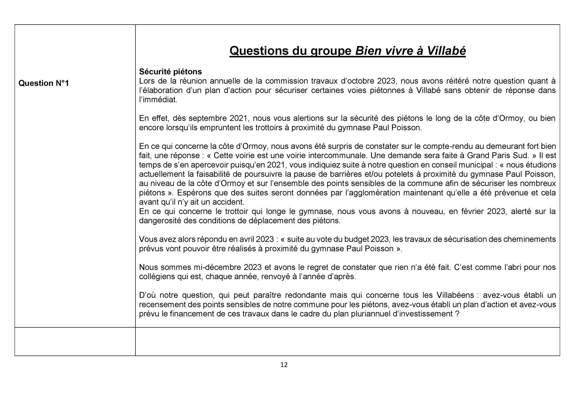 Quand nous parlons sécurité piétons, quand nous questionnons un recensement des points sensibles, un plan d’action et une projection du financement, il n’y a plus personne. Aucune réponse du maire comme à son habitude.