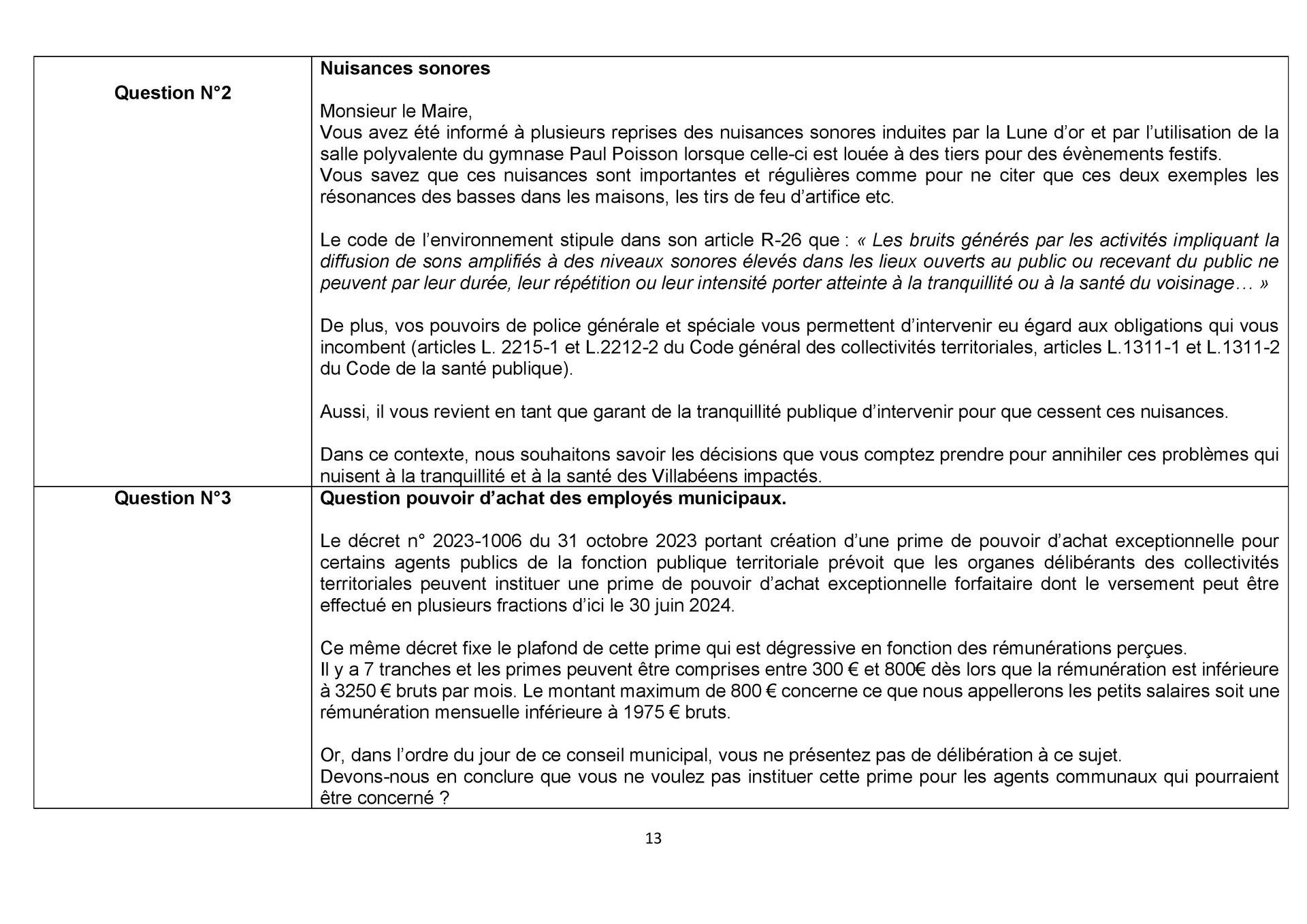 Autre fait qui ne dérange pas le prince : la question orale posée par son groupe « Agir pour Villabé » qui fait état d’une situation enregistrée le 14 décembre. Or les questions doivent parvenir en mairie 3 jours avant le Conseil Municipal qui a eu lieu le 15 décembre….