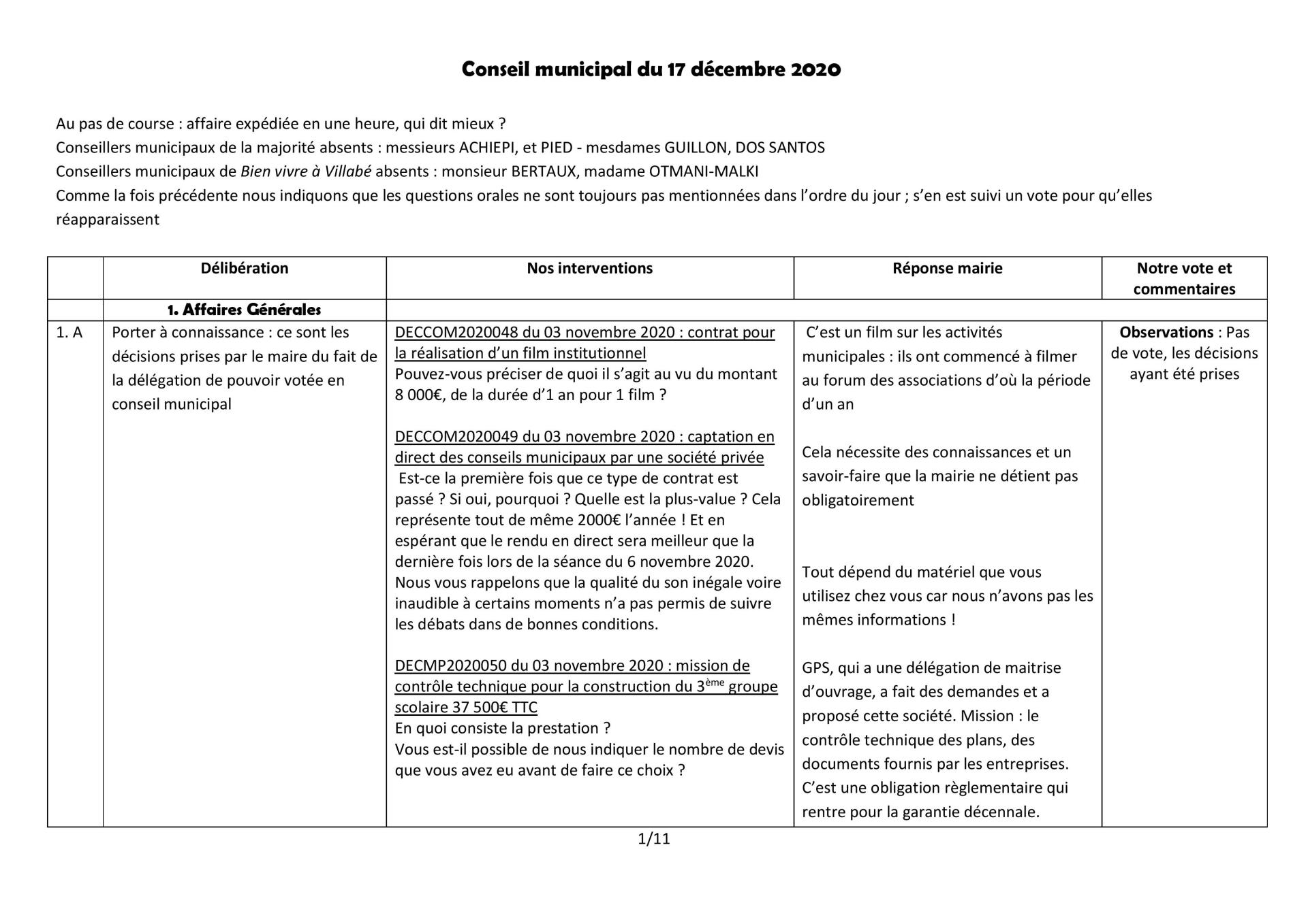 Conseil Municipal du 17 décembre 2020