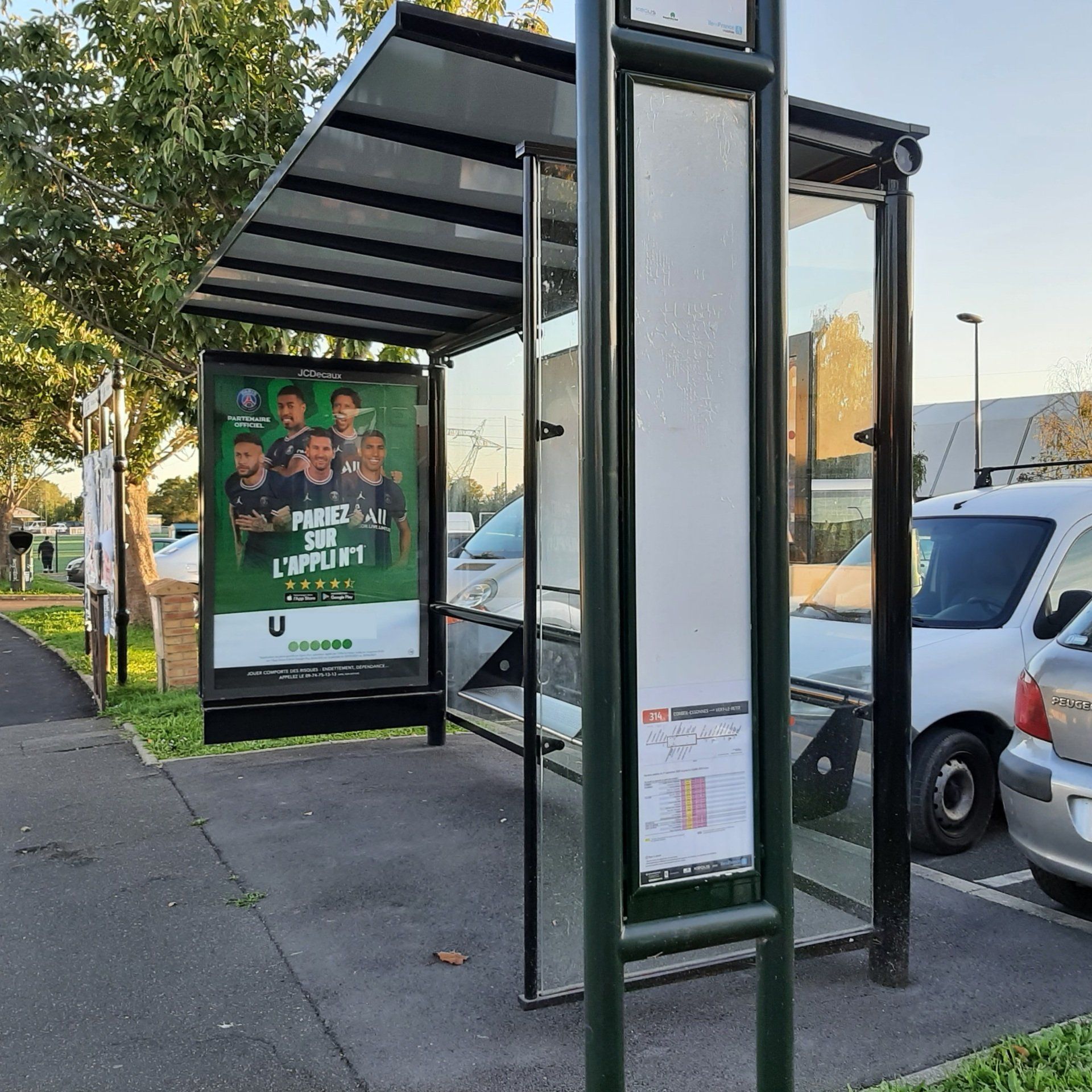 Question 1 : abri de bus Rue du chemin vert à proximité du gymnase/affiches publicitaires.