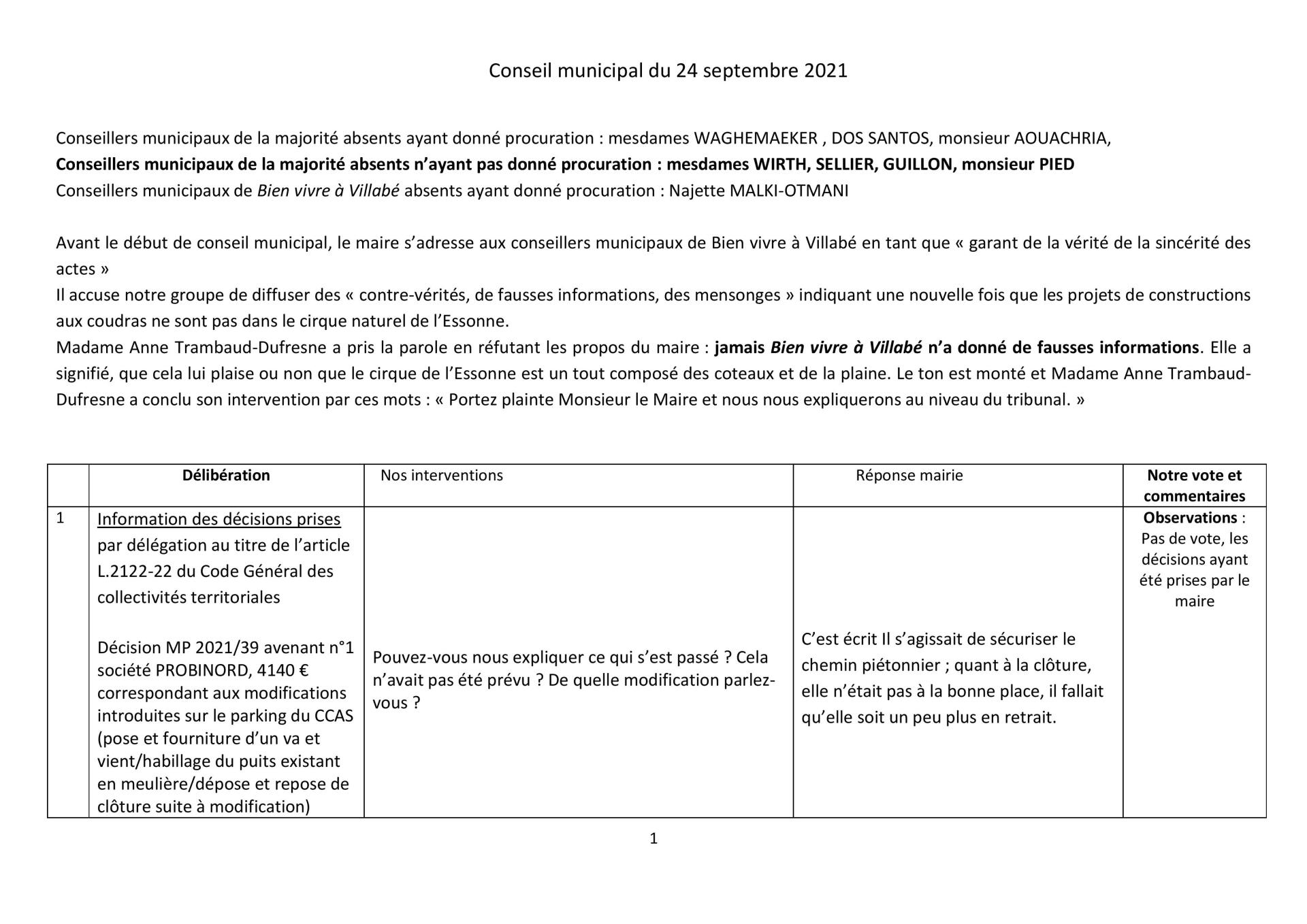 Ne cherchez pas notre intervention sur le procès-verbal signé du maire car rien n’est écrit …