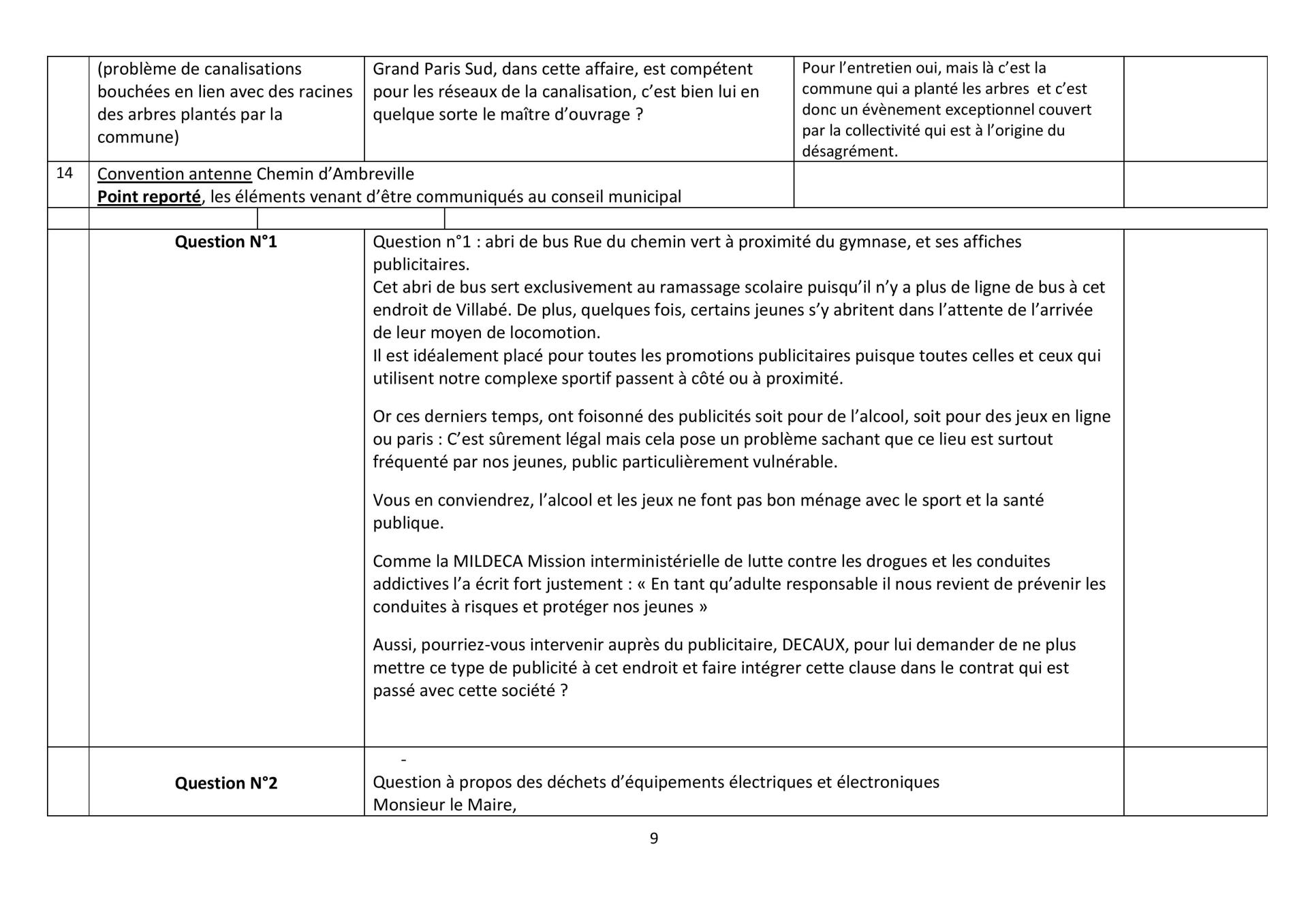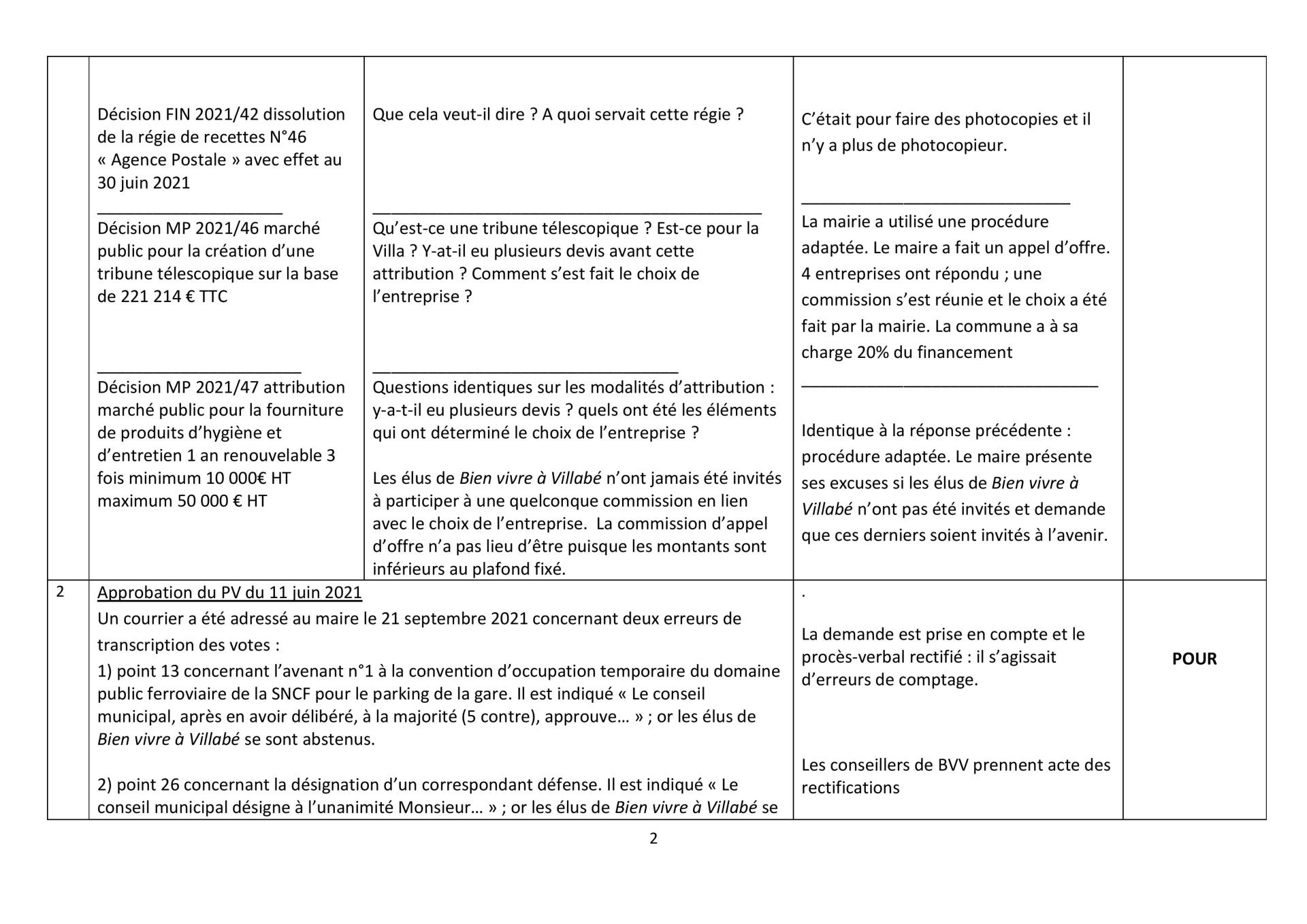 Heureusement que le conseil municipal existe et que les conseillers municipaux de Bien vivre à Villabé posent des questions : c’est à l’occasion du débat sur ce point que nous avons appris le départ de la directrice du CCAS arrivée depuis peu (un an environ) ! Que de départs et d’arrivées au sein du personnel communal !