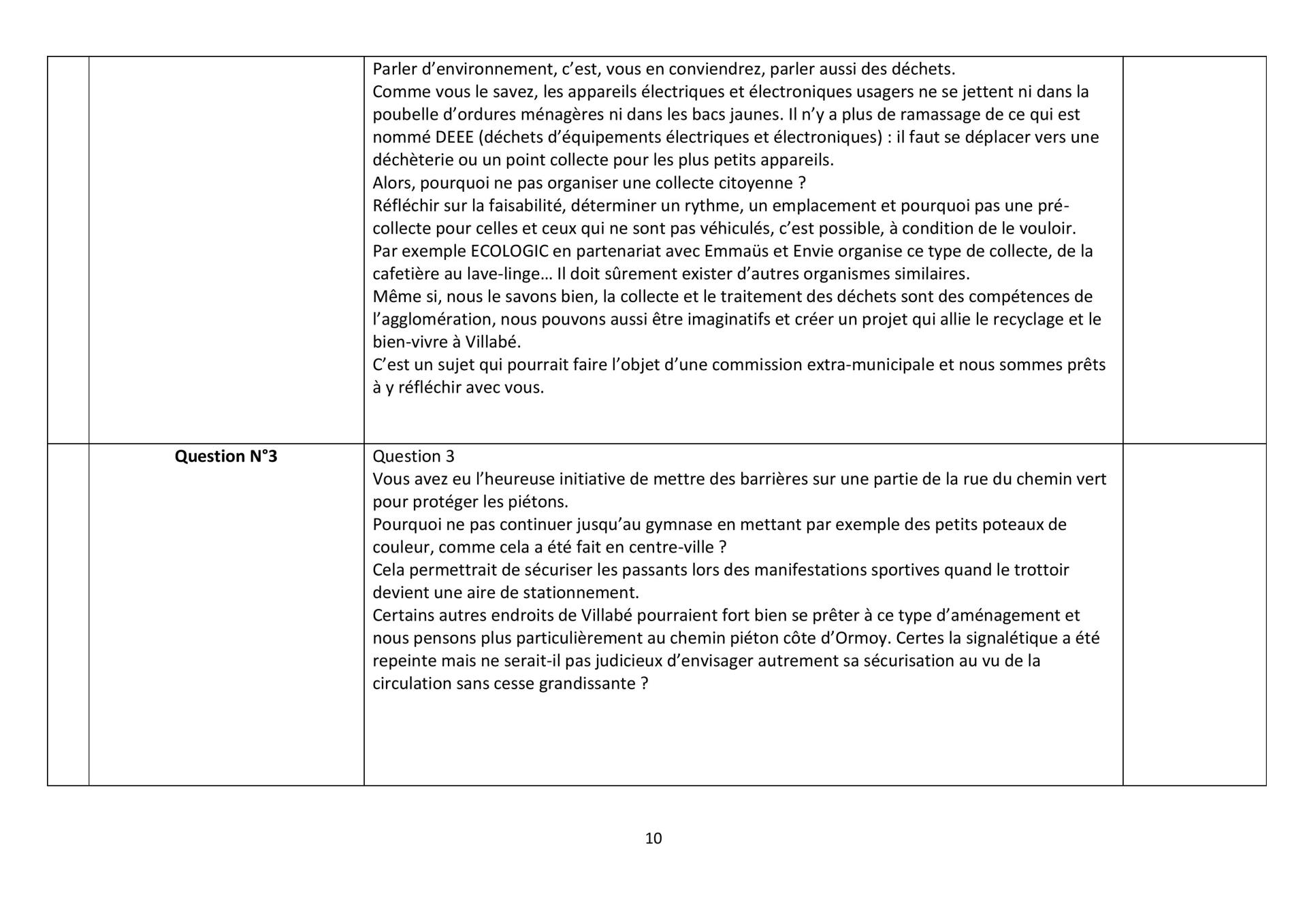 Reste cependant une interrogation : pour quand ? Tout ne peut se faire en un jour, mais un plan d’actions peut lui s’élaborer avec des échéances, ce qui n’est pas le cas à Villabé