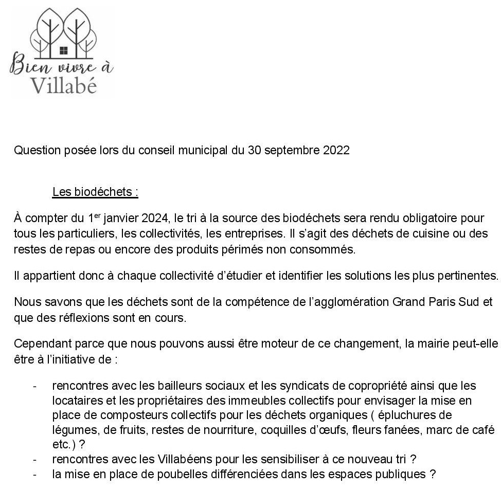 Le groupe Bien vivre à Villabé, tout en sachant que les déchets sont de la compétence de l’agglomération Grand Paris Sud et que des réflexions sont en cours, propose :