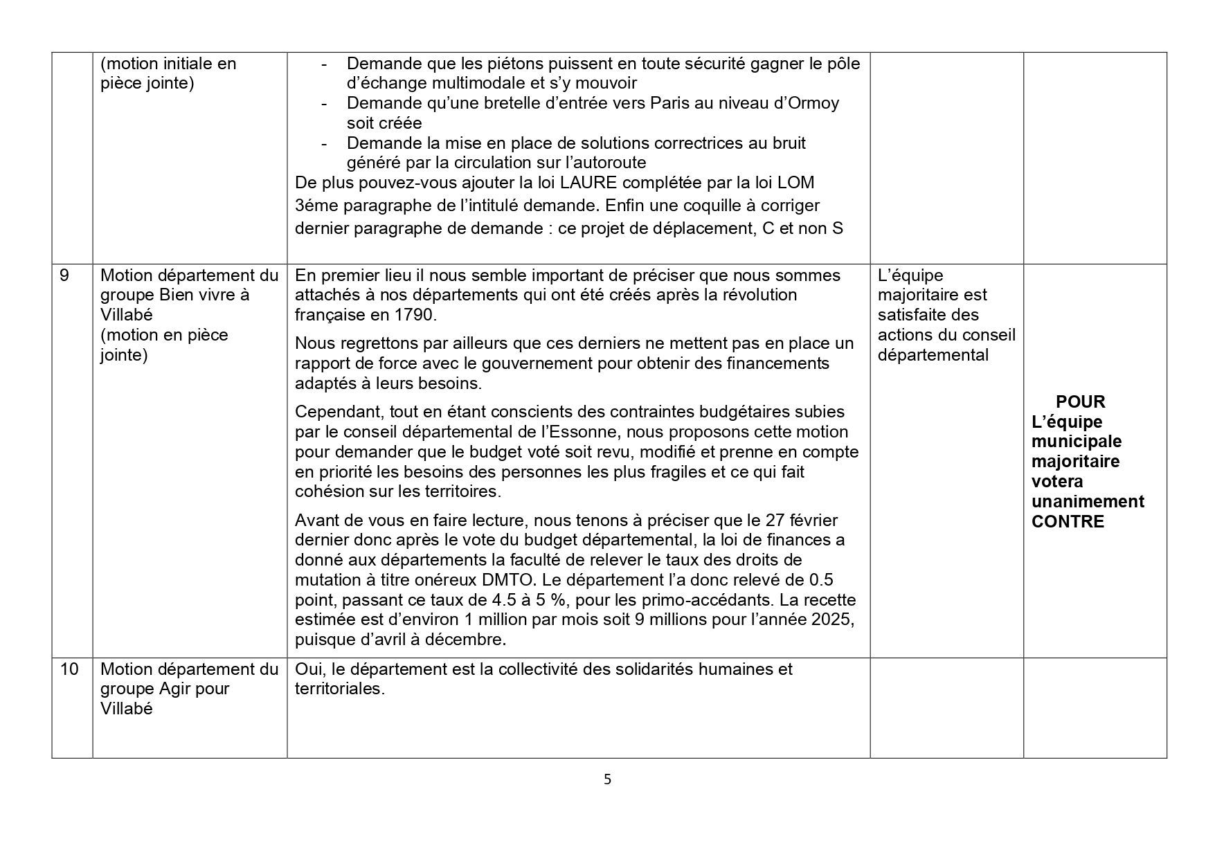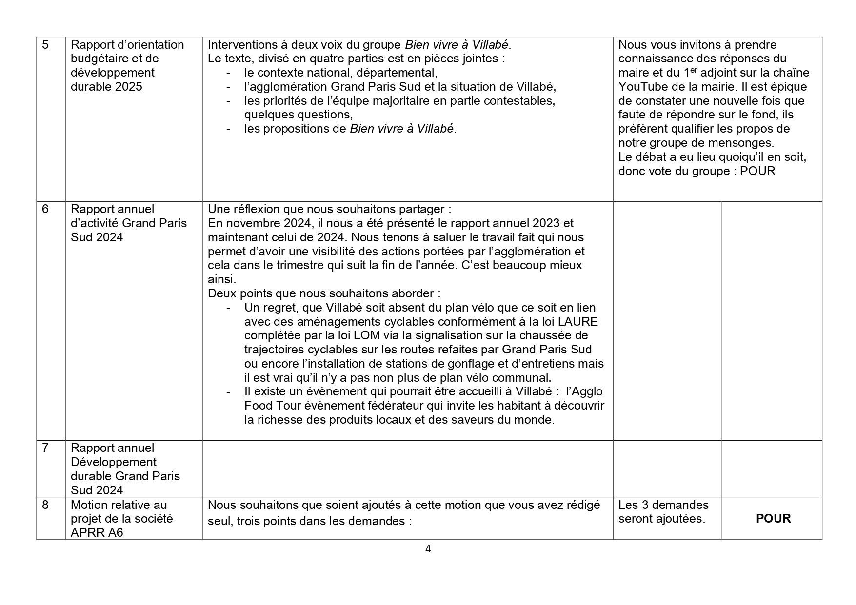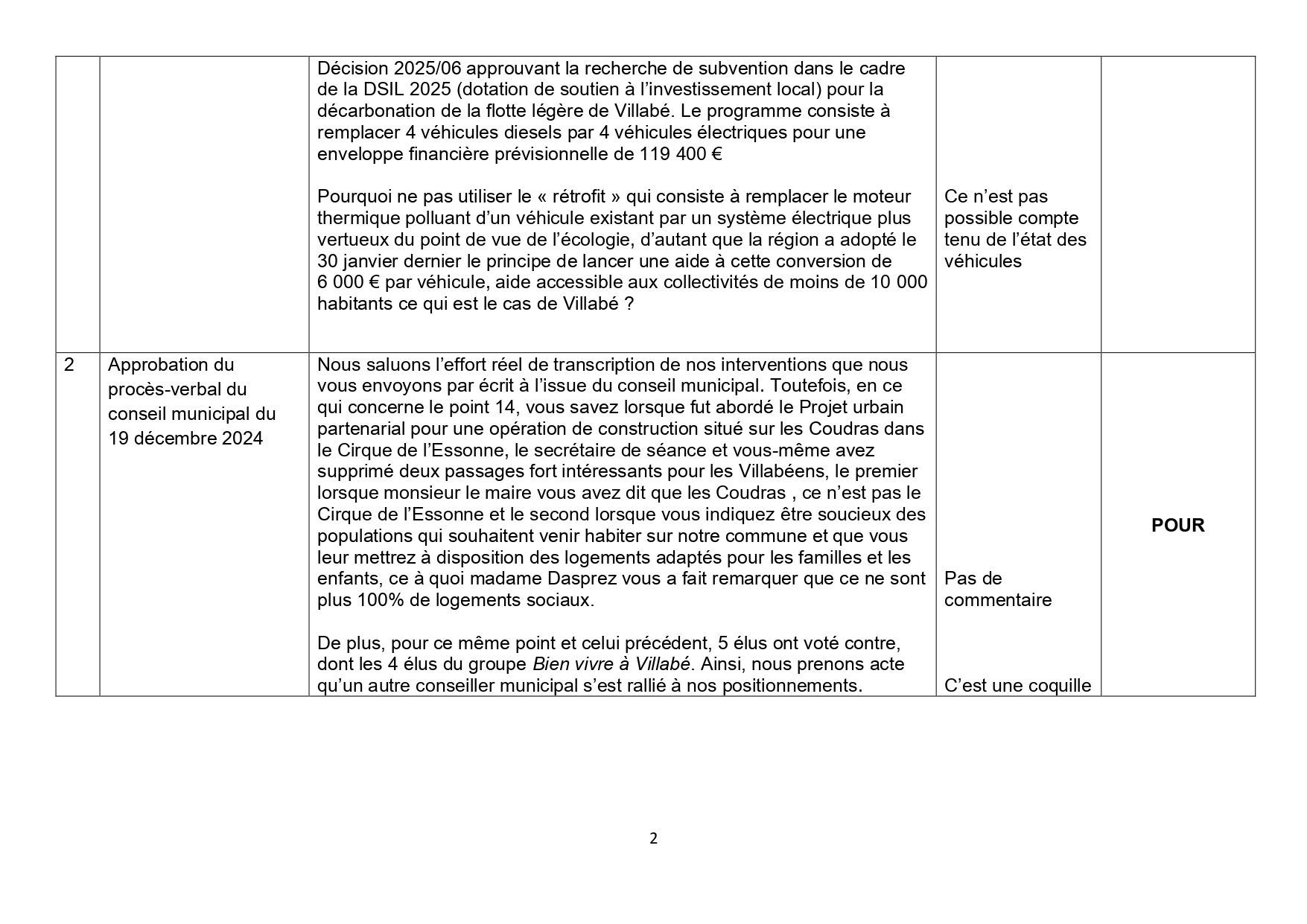 Zoom : Motion du groupe Bien vivre à Villabé rejetée en Conseil municipal ! 27/03/2025