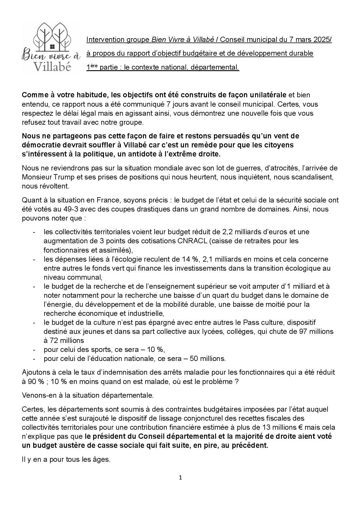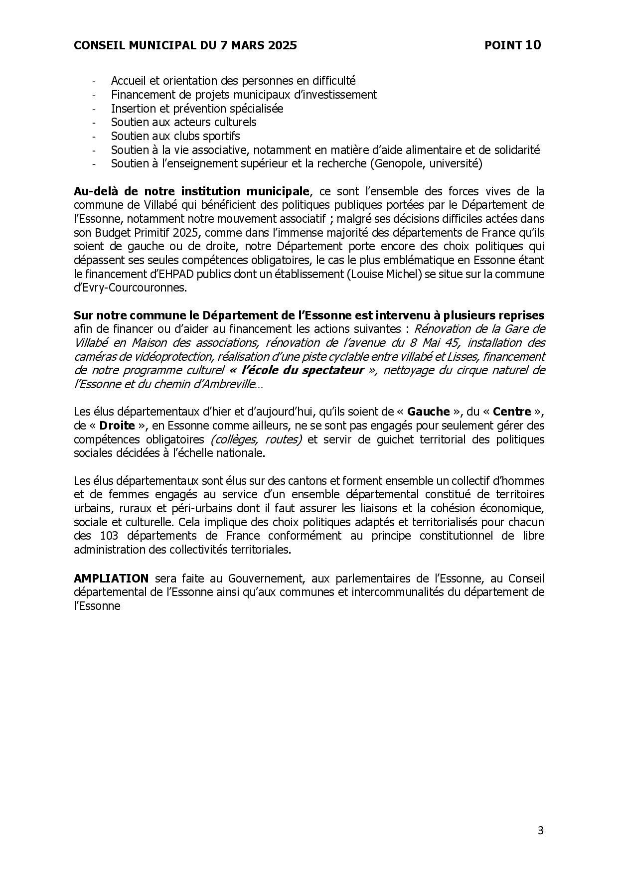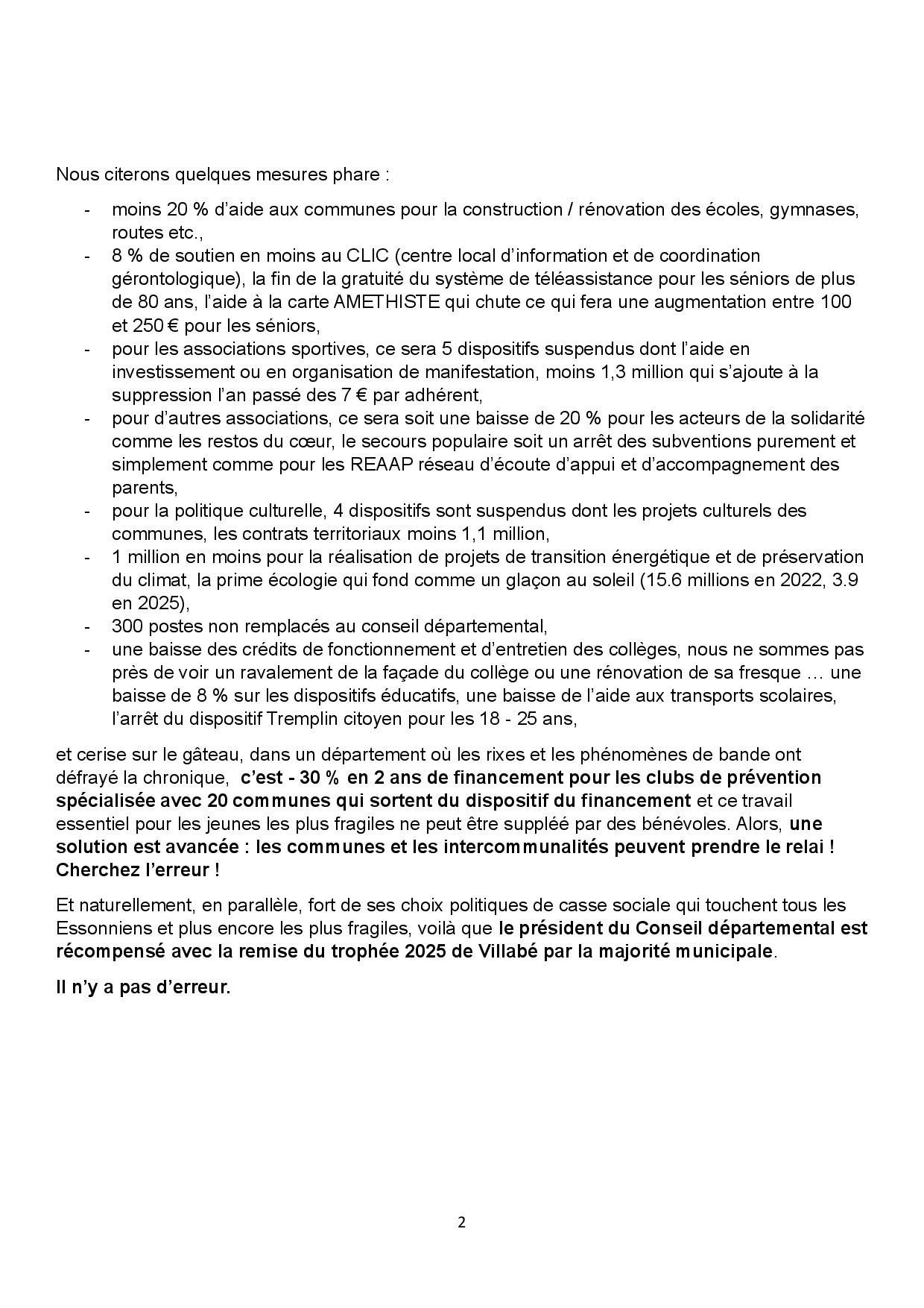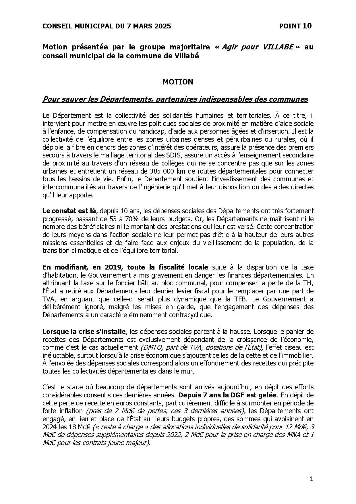 Zoom : Motion du groupe Bien vivre à Villabé rejetée en Conseil municipal ! 27/03/2025
