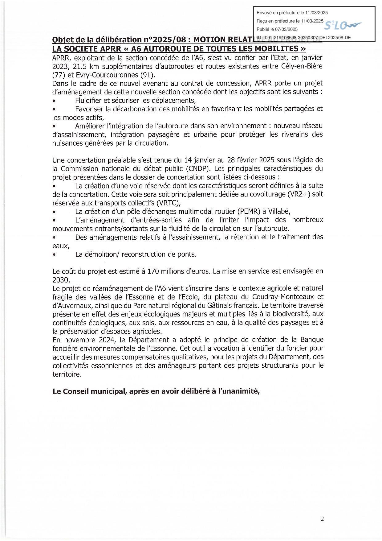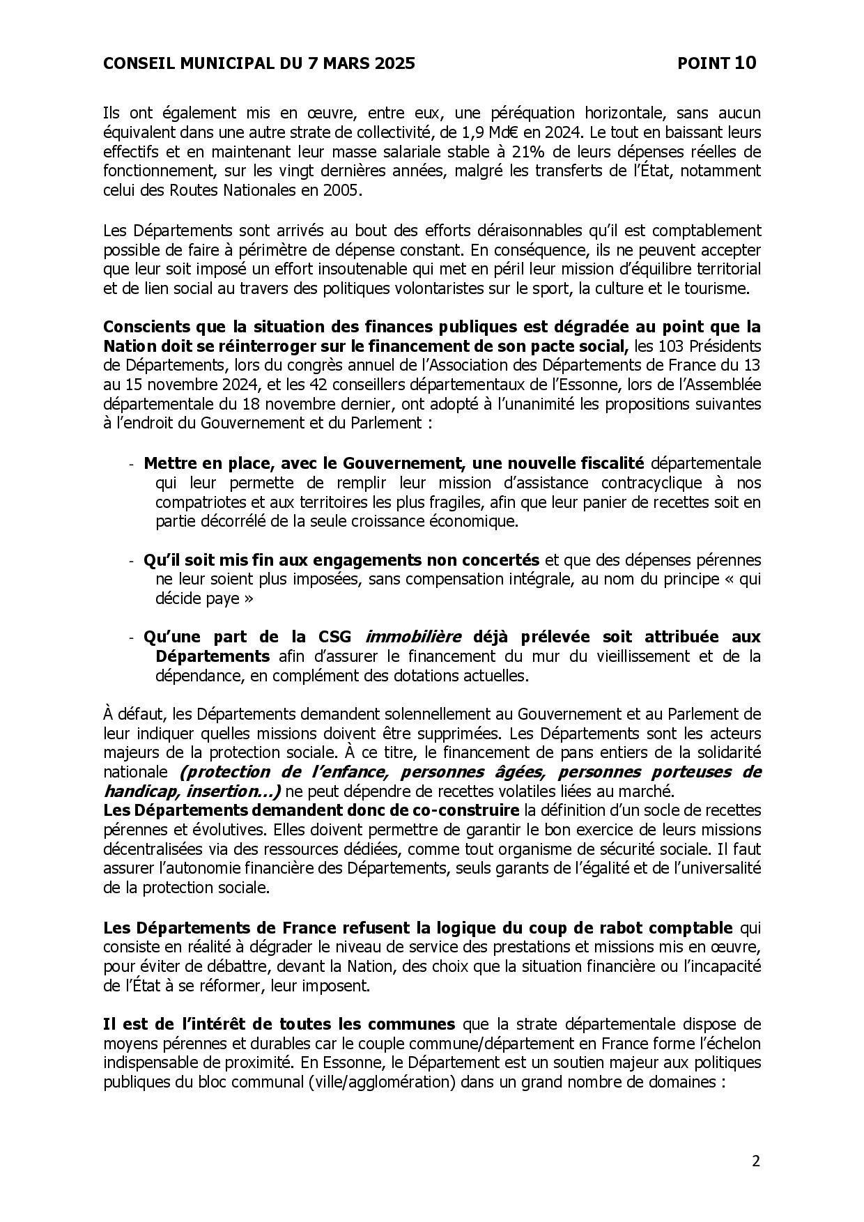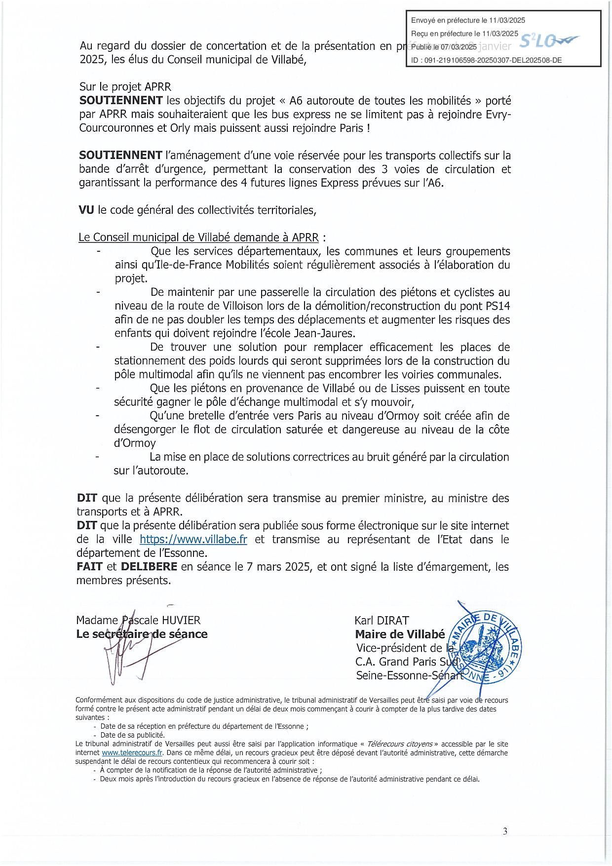 Que Ile de France Mobilité qui a initié se projet de déplacement décarboné puisse étudier la possibilité de faire circuler des bus express jusqu’à Paris. » (Cf. point 8 Conseil municipal du 07 mars 2025 ci-dessous après le compte rendu)