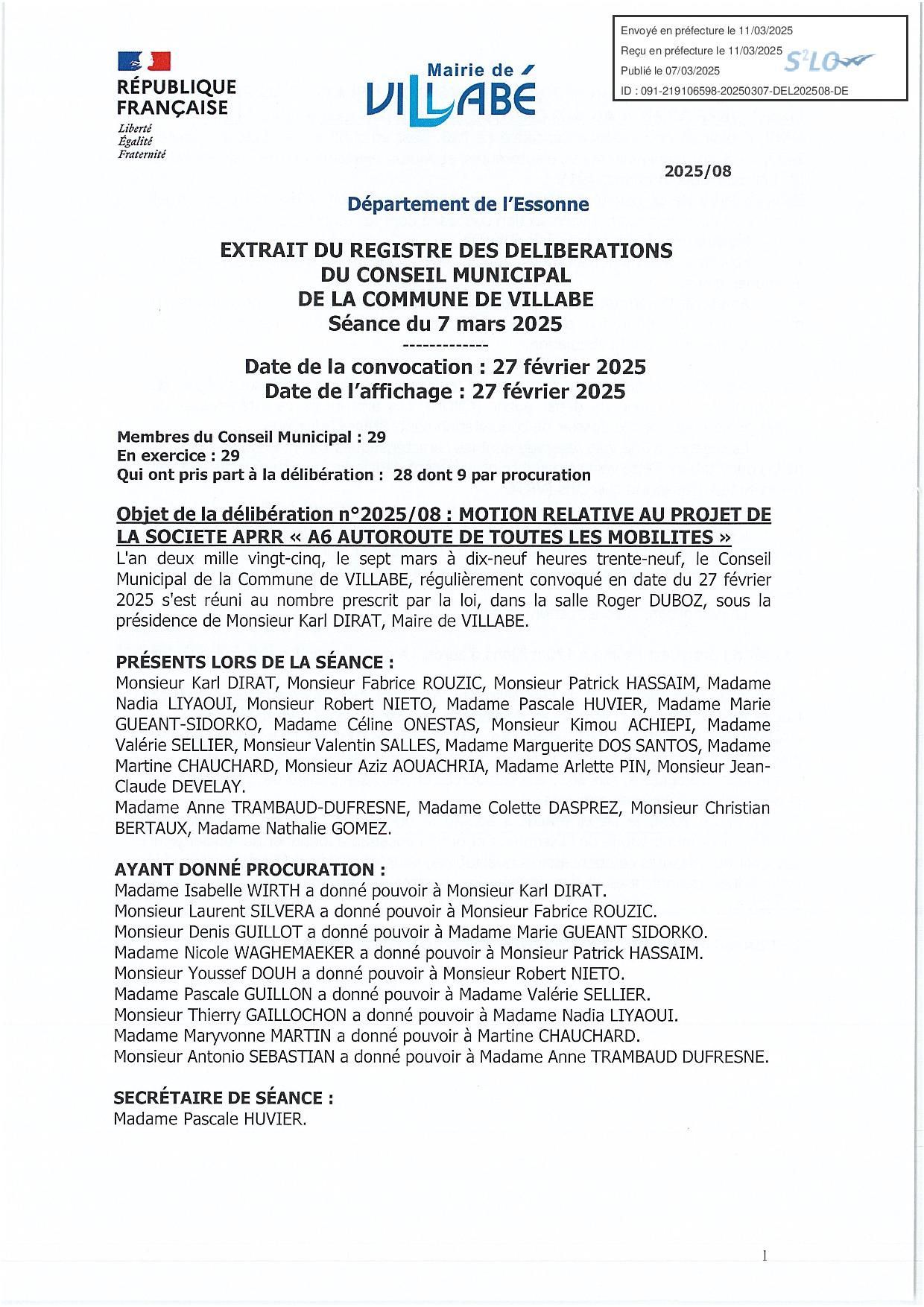 Zoom "motion relative au projet de la société APRR « A6 autoroute de toutes les mobilités »" 03/04/2025
