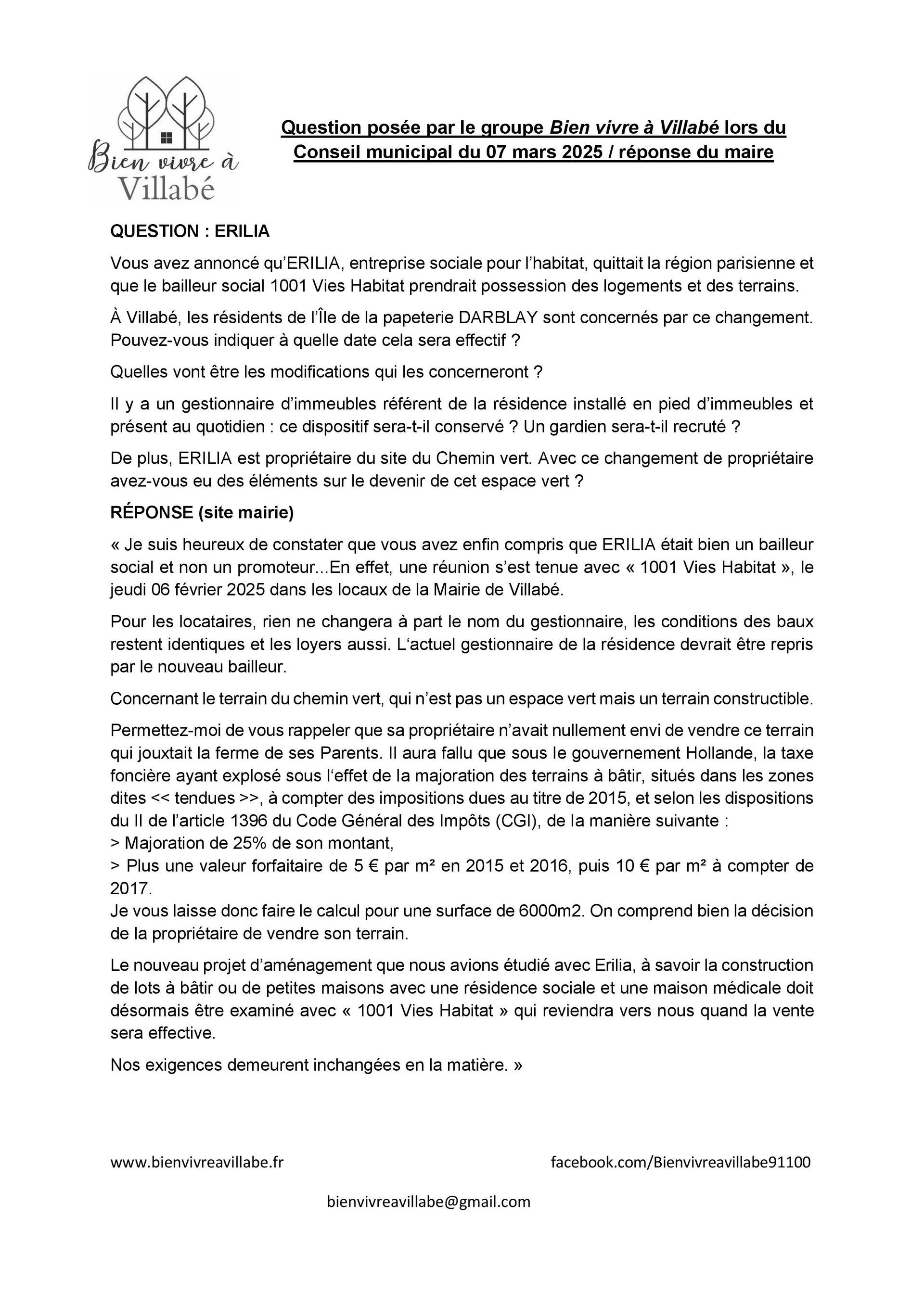 Le groupe Bien vivre à Villabé a donc posé plusieurs questions à ce sujet au dernier conseil municipal.