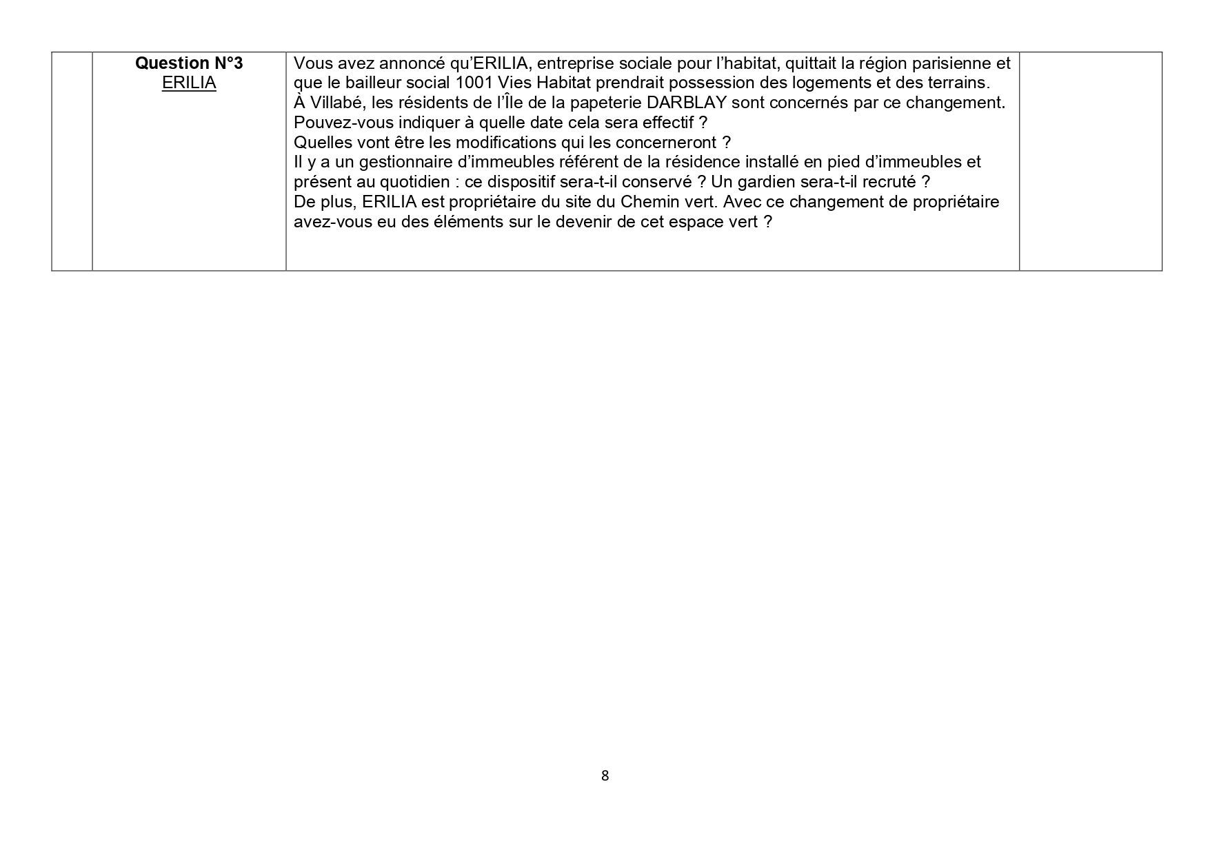 Villabé est concerné. En effet, cette entreprise sociale pour l’habitat est propriétaire des logements situés sur l’Île de la papeterie DARBLAY et du terrain rue du Chemin vert.