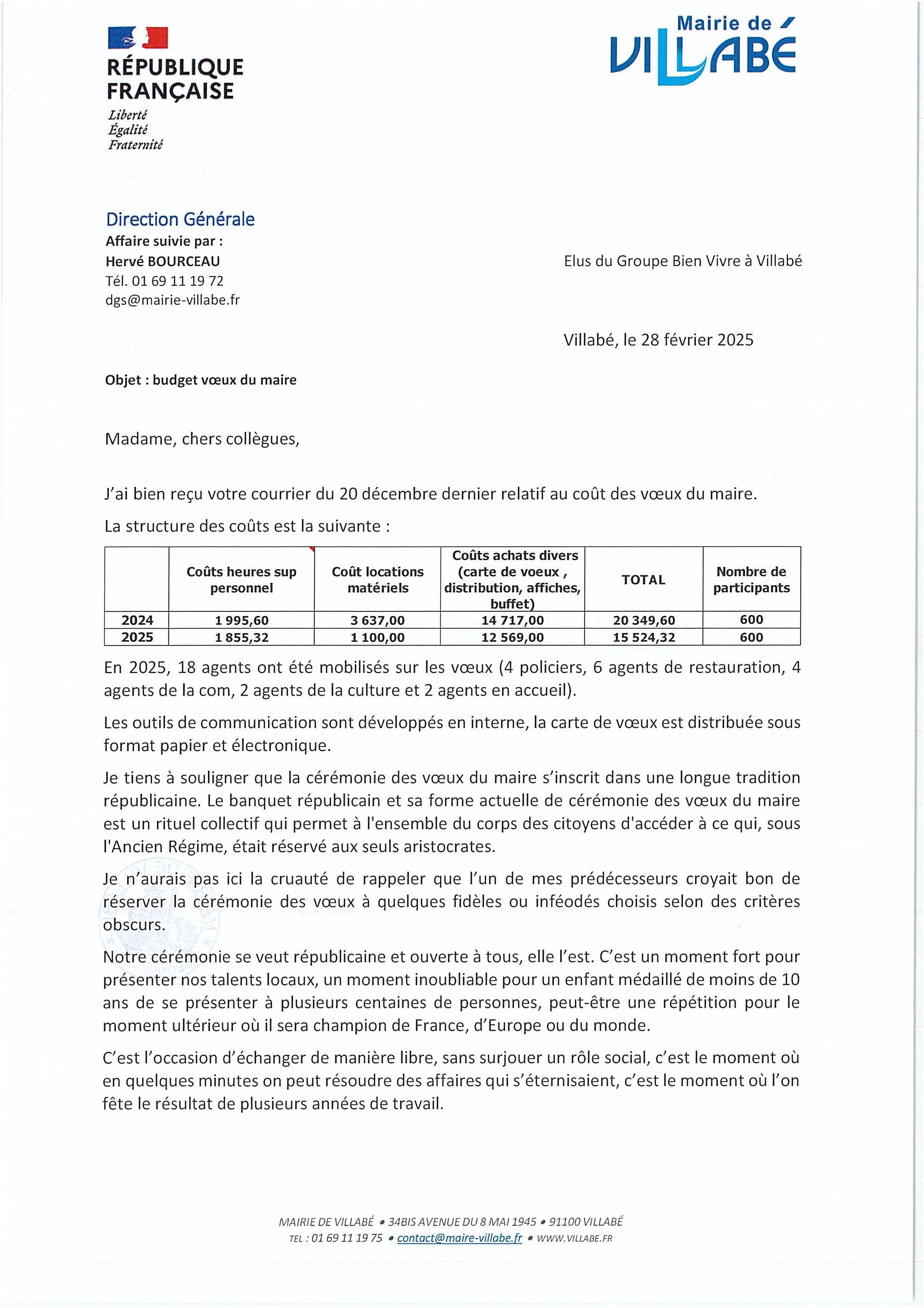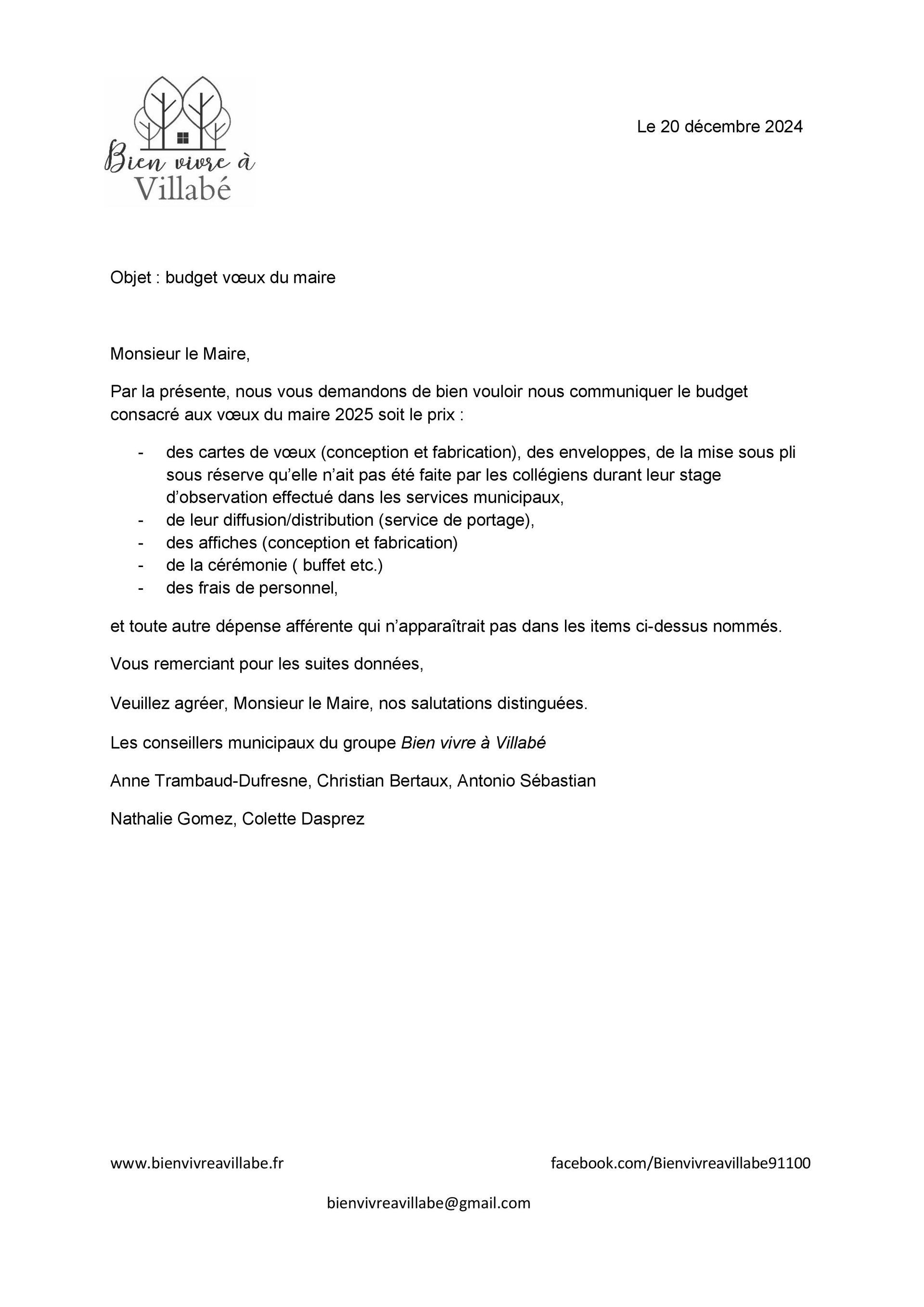 Et nous sommes toujours en attente d’une réponse écrite du maire au courrier transmis, le 20 décembre 2024, lui demandant de bien vouloir communiquer le budget consacré à ses vœux.