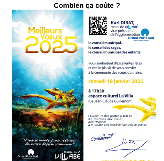 Mais en l’occurrence, les vœux du maire sont-ils vraiment destinés aux habitants de Villabé ou sont-ils un outil de communication/propagande utilisé par le maire aux frais des contribuables ?