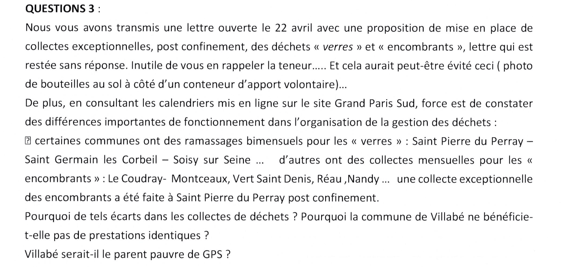Question du 8 Juin 2020 de Bien vivre à Villabé