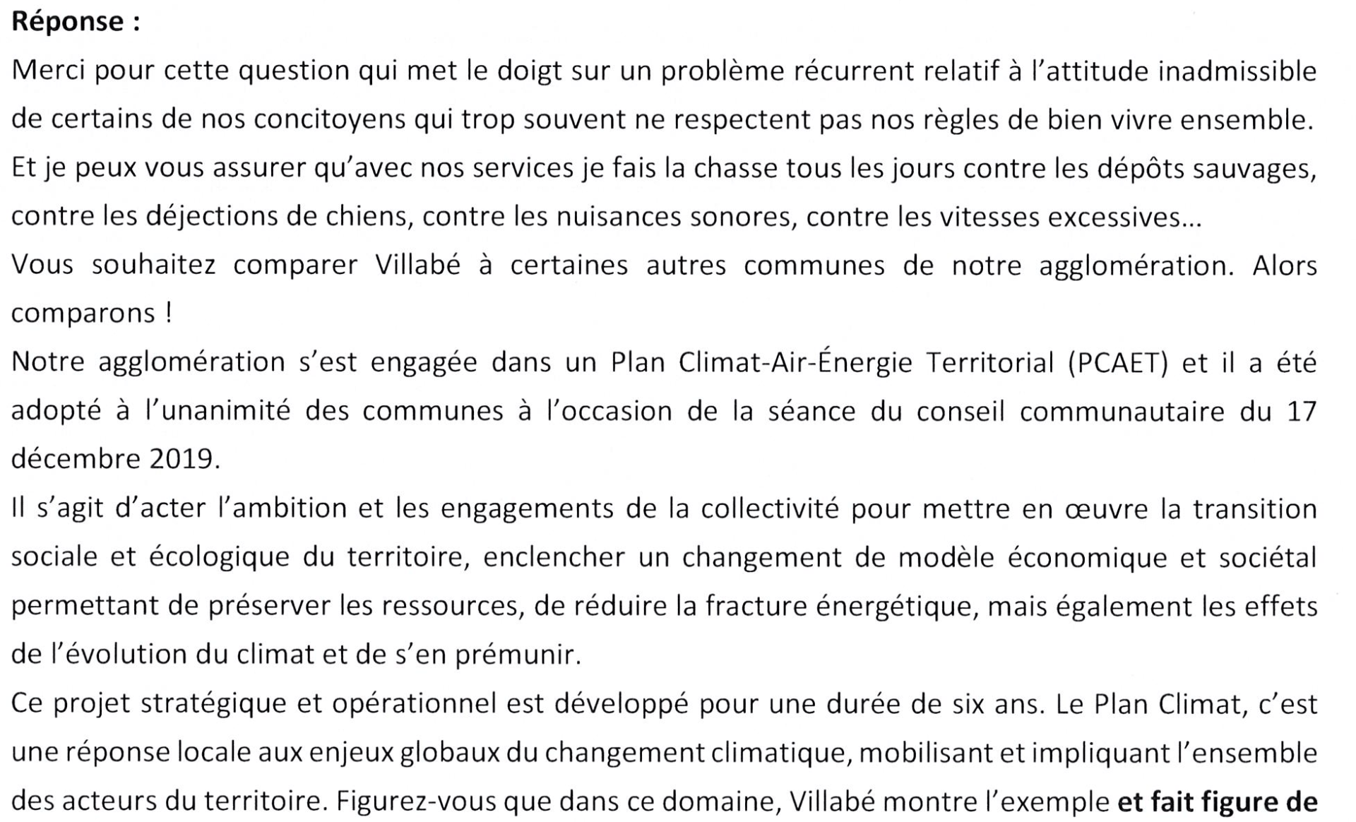 Réponse du 12 Juin 2020 de Monsieur le Maire