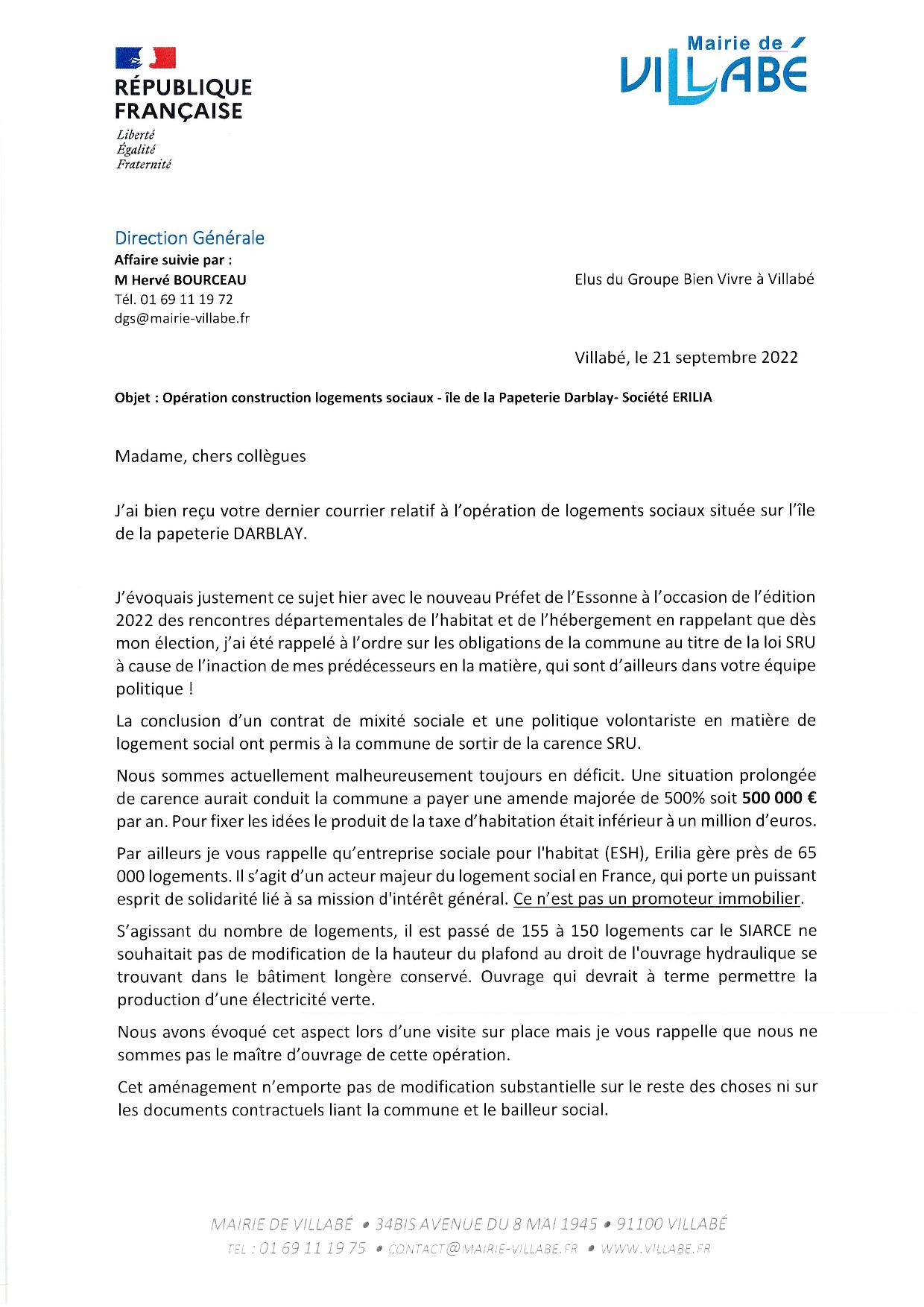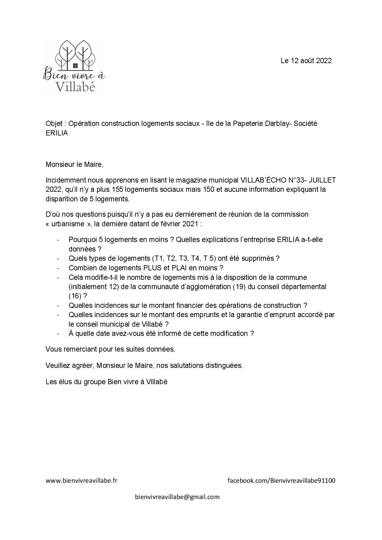 Suite du courrier de Bien vivre à Villabé du 12 août 22