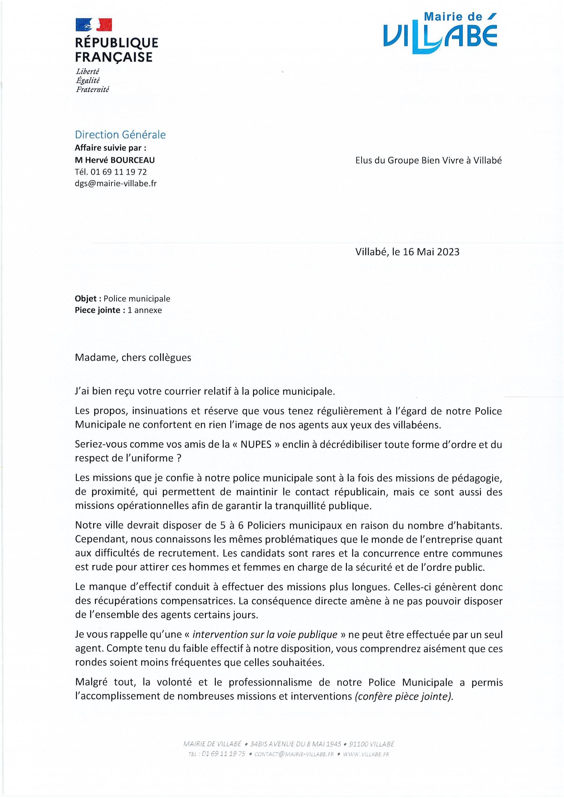 De plus, comme il a indiqué lors du conseil municipal de mars 2023 « nous poursuivons les recrutements de policiers municipaux » et sachant que les départs et recrutements sont un phénomène récurent à Villabé, (nous ne comptabilisons plus le nombre d’agents recrutés puis partis), nous lui avons demandé de préciser l’effectif de la police municipale. Nous n’avons pas eu de réponse.