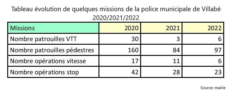 Nous avons demandé au maire de nous communiquer l’état des missions réalisées en 2022 par la police municipale de Villabé, la dernière commission « sécurité » datant de février 2021.
