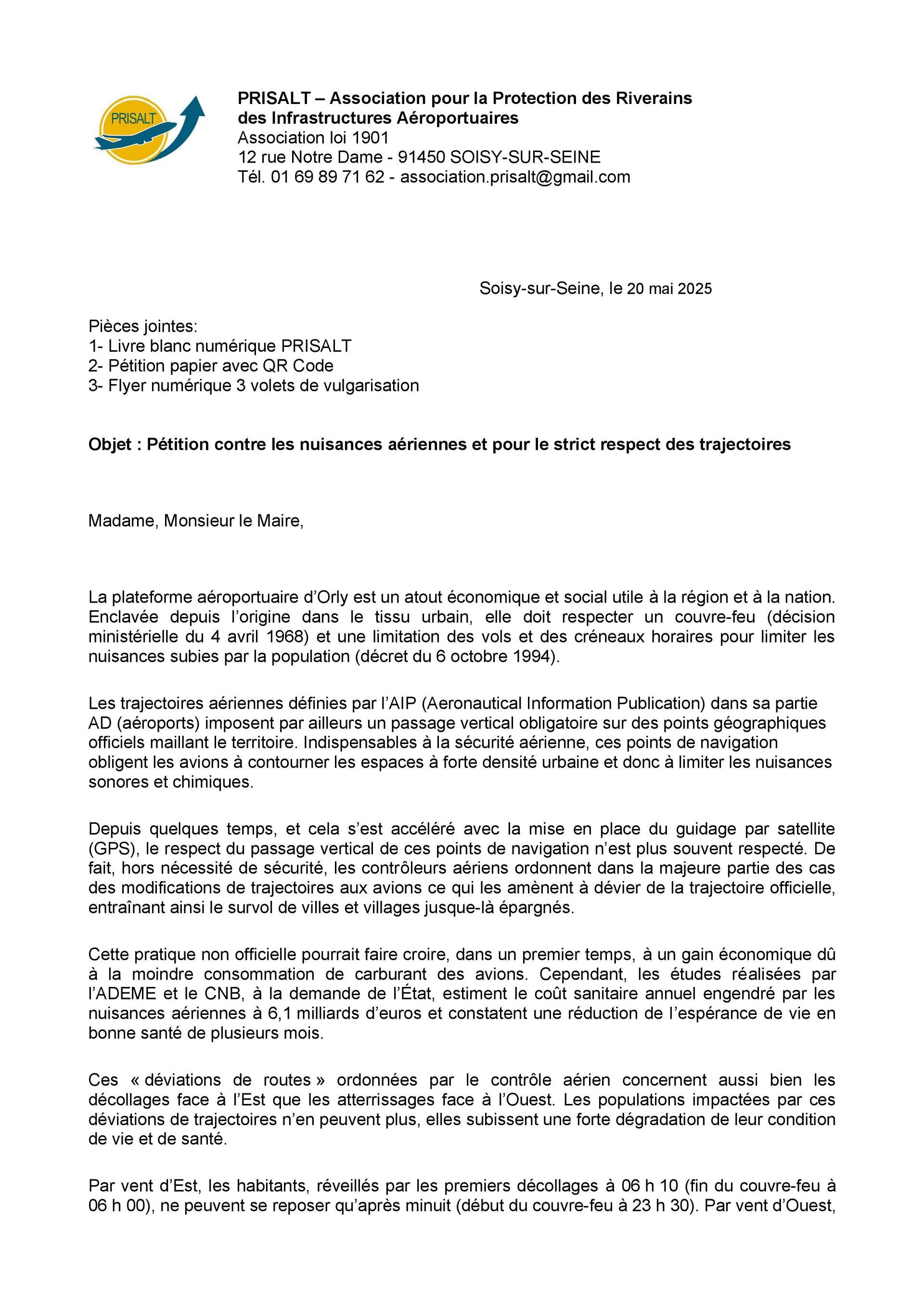 Alors, oui, nous pointons son inaction et estimons que la majorité municipale qui dit lutter contre les nuisances aériennes devrait être plus attentive au suivi de ce dossier. Cela aurait pu se traduire par l’adhésion de la mairie de Villabé à l’association Prisalt et le portage réel de cette pétition qui, à ce jour, n’a pas été mise en ligne sur le site de la mairie, ni proposée aux Villabéen(ne)s.