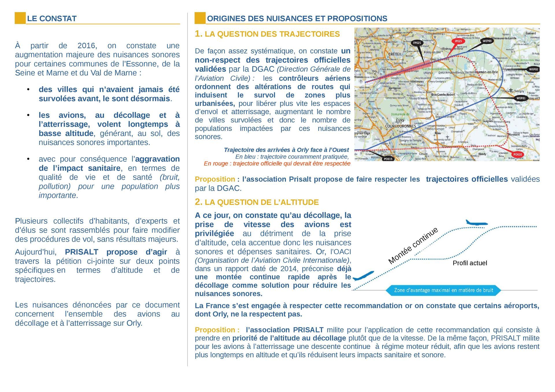 Il a été constaté une augmentation des nuisances aériennes sonores et chimiques à la suite des nouvelles trajectoires des avions ordonnées par le contrôle aérien d’Orly :