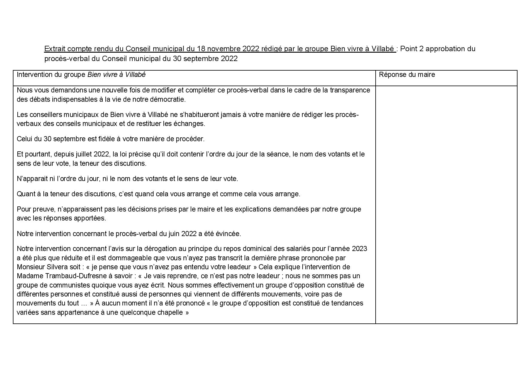 Zoom point 2 / procès-verbal Conseil municipal du 30.09.2022