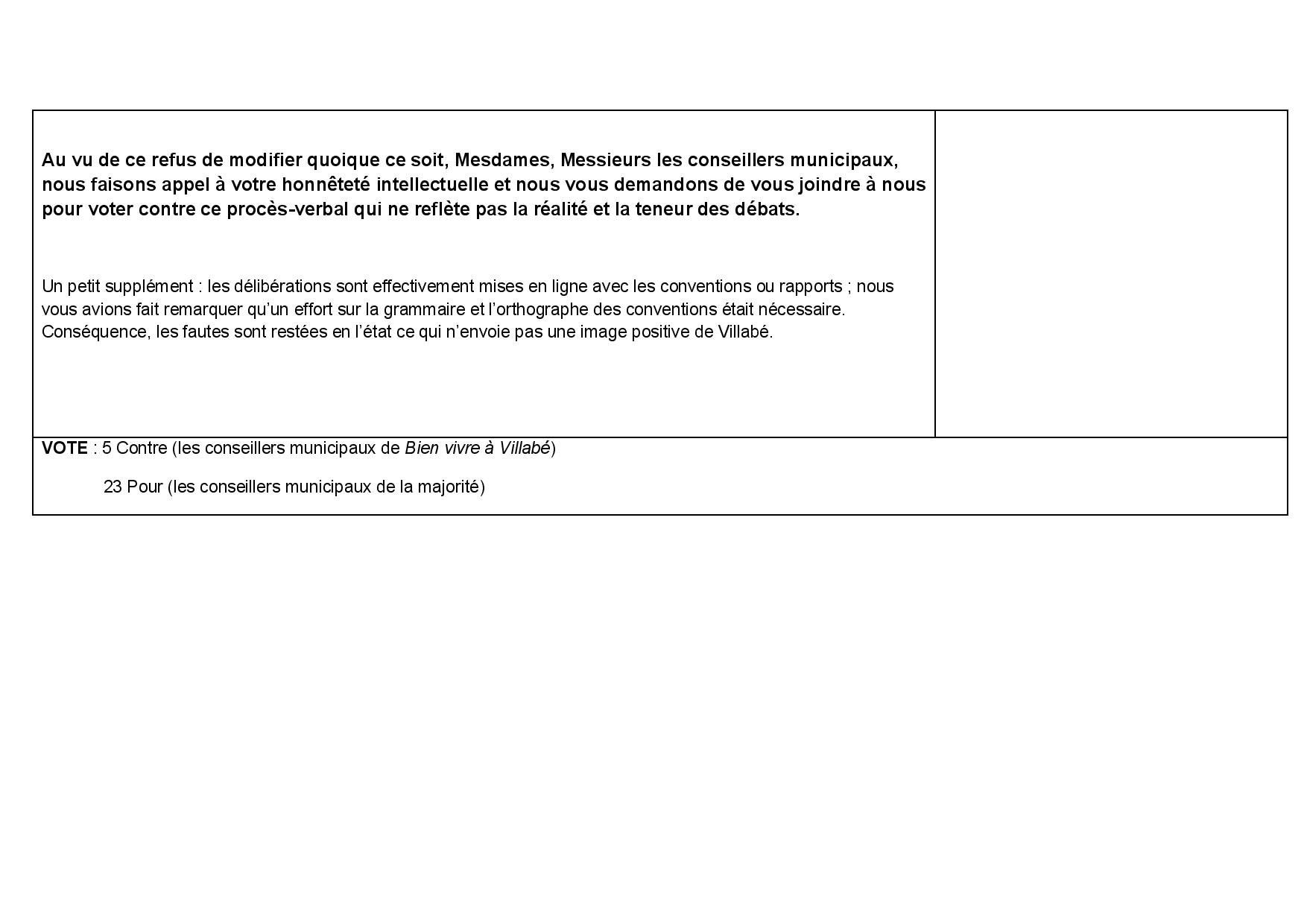 Vote des conseillers municipaux de Bien vivre à Villabé : CONTRE