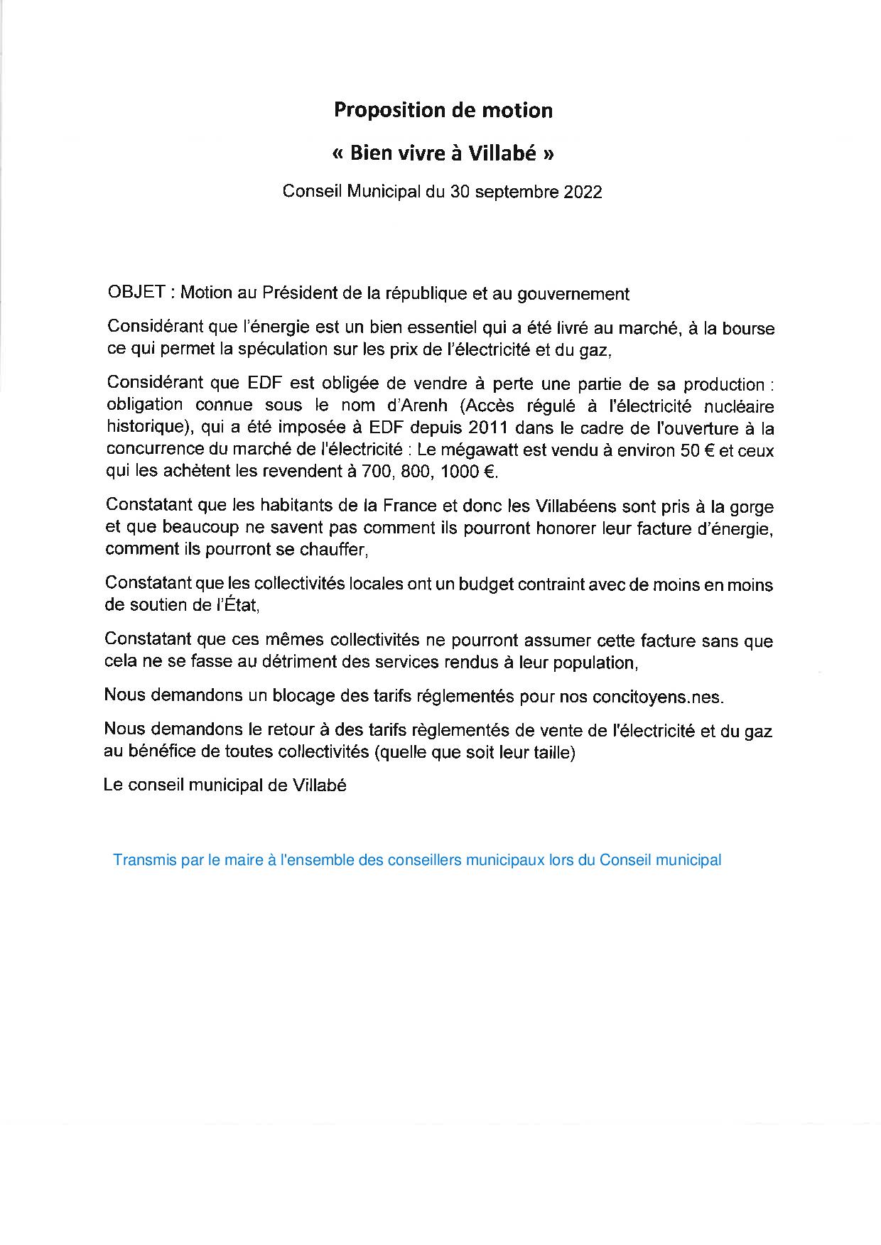 Bien sûr il a été voté une motion à l’unanimité, motion qui a repris quelques passages de celle présentée par les conseillers municipaux de Bien vivre à Villabé. Mais, le maire a refusé d’y intégrer deux éléments d’explication de cette crise :