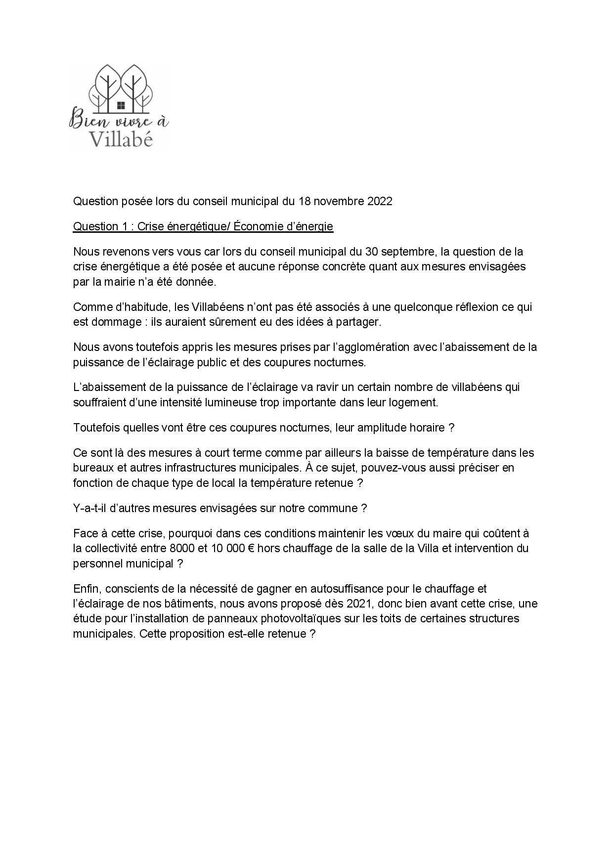 Crise énergétique / Questions /Conseils municipaux des 30 septembre et 18 novembre 2022