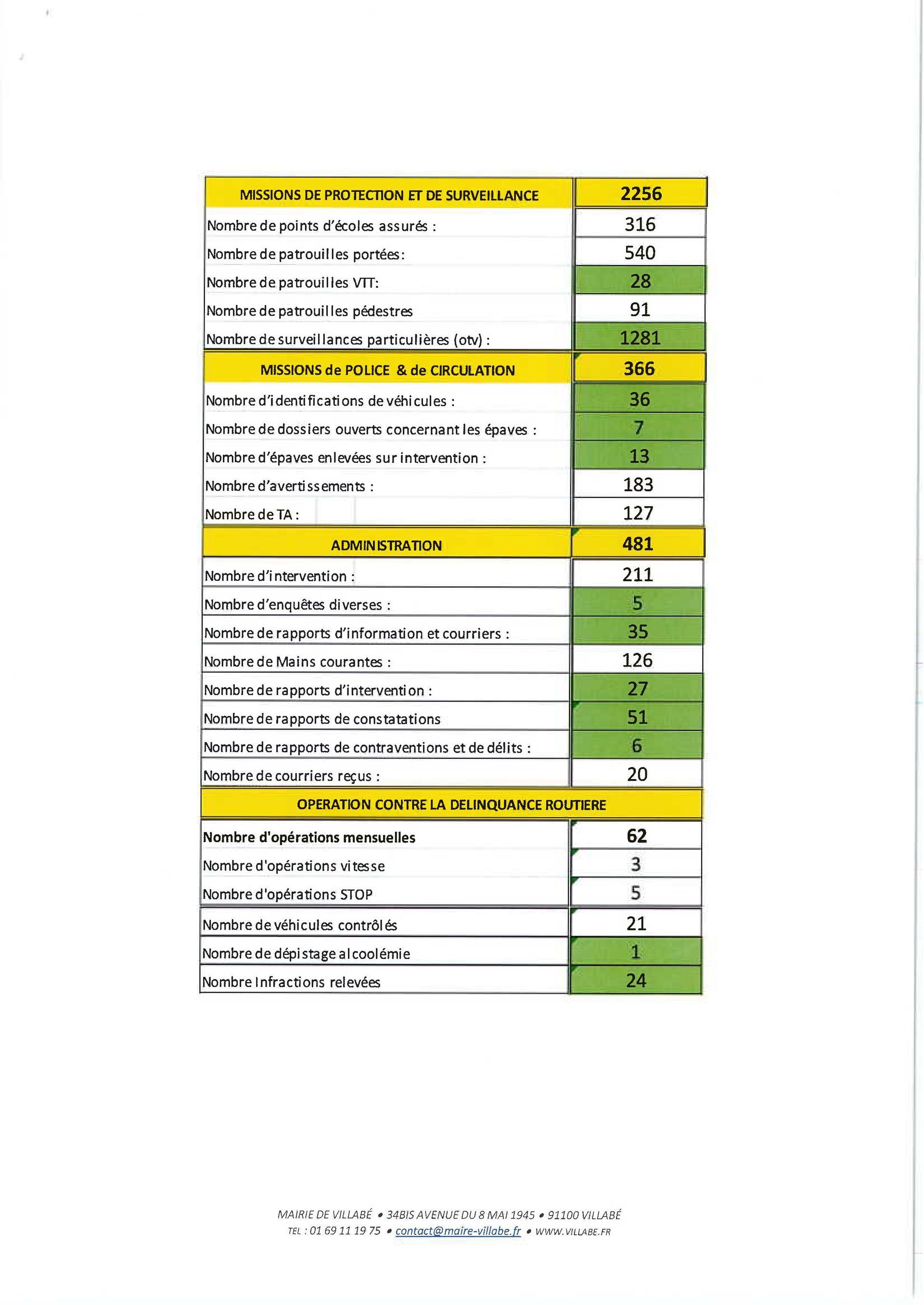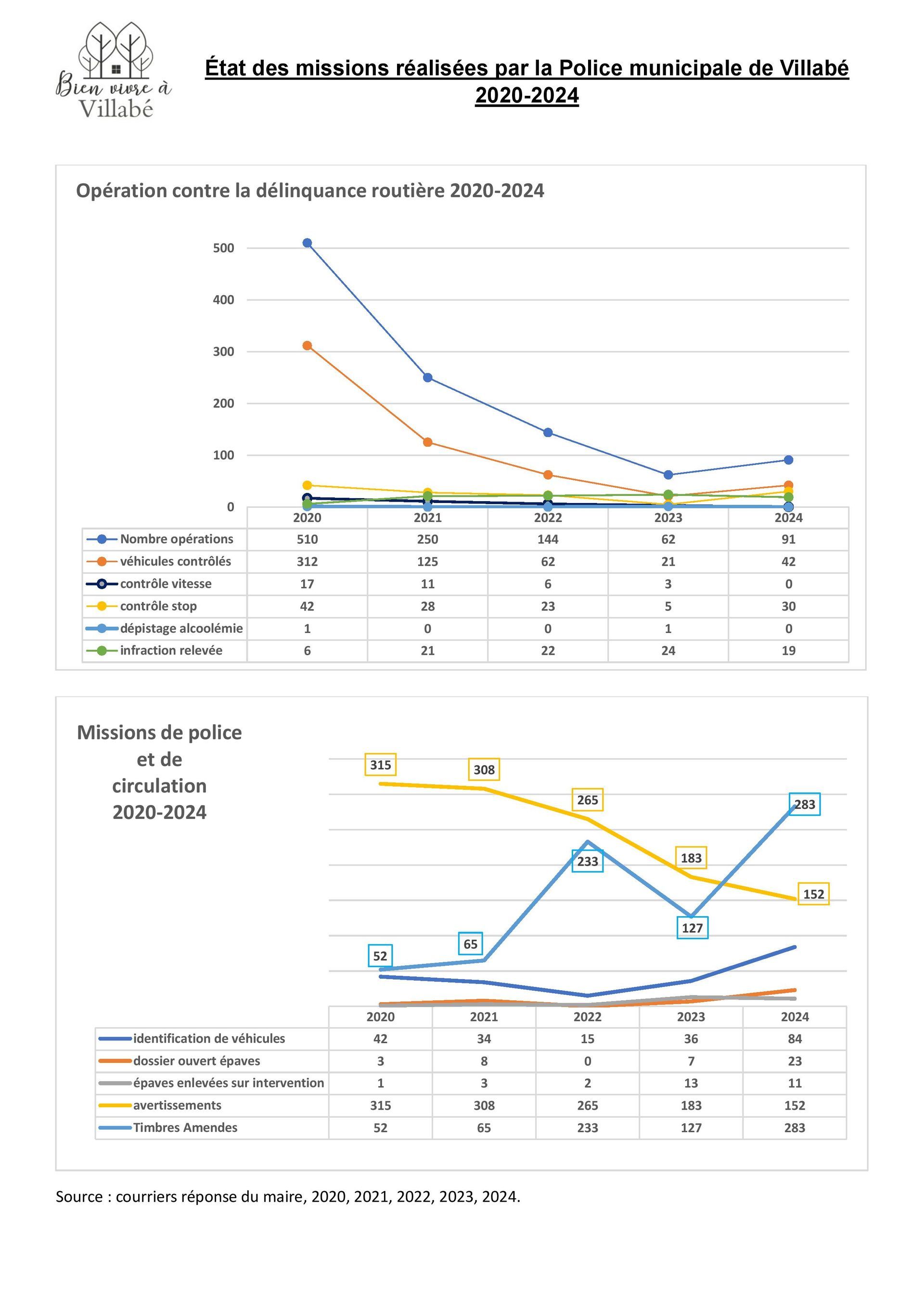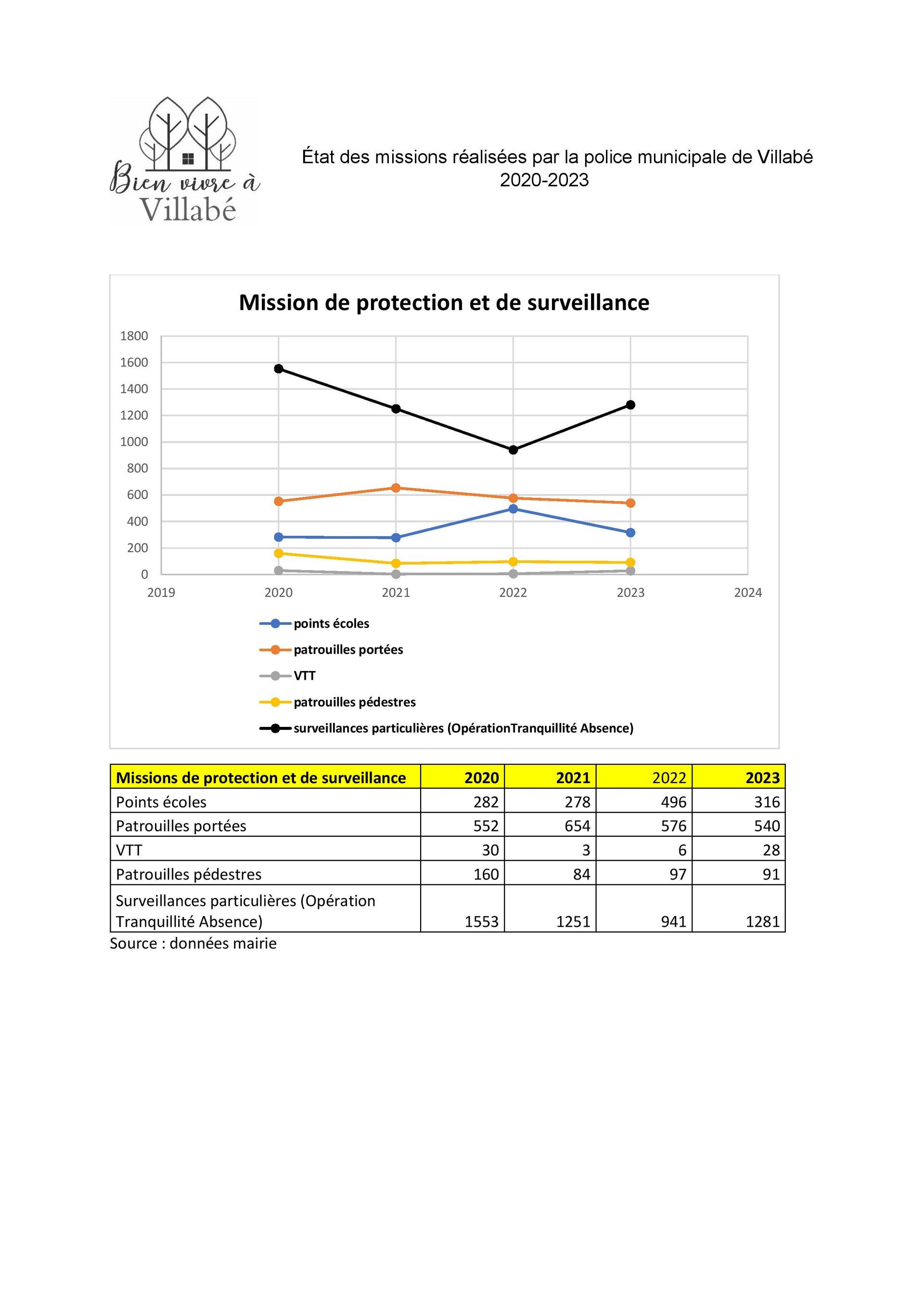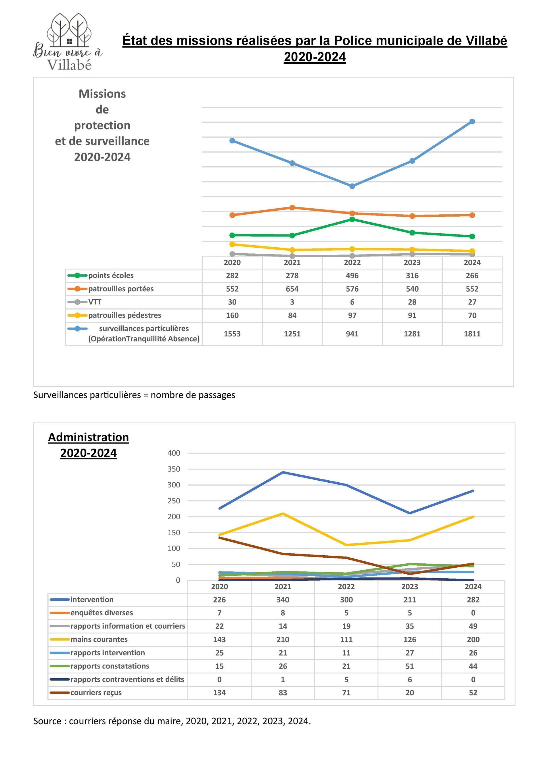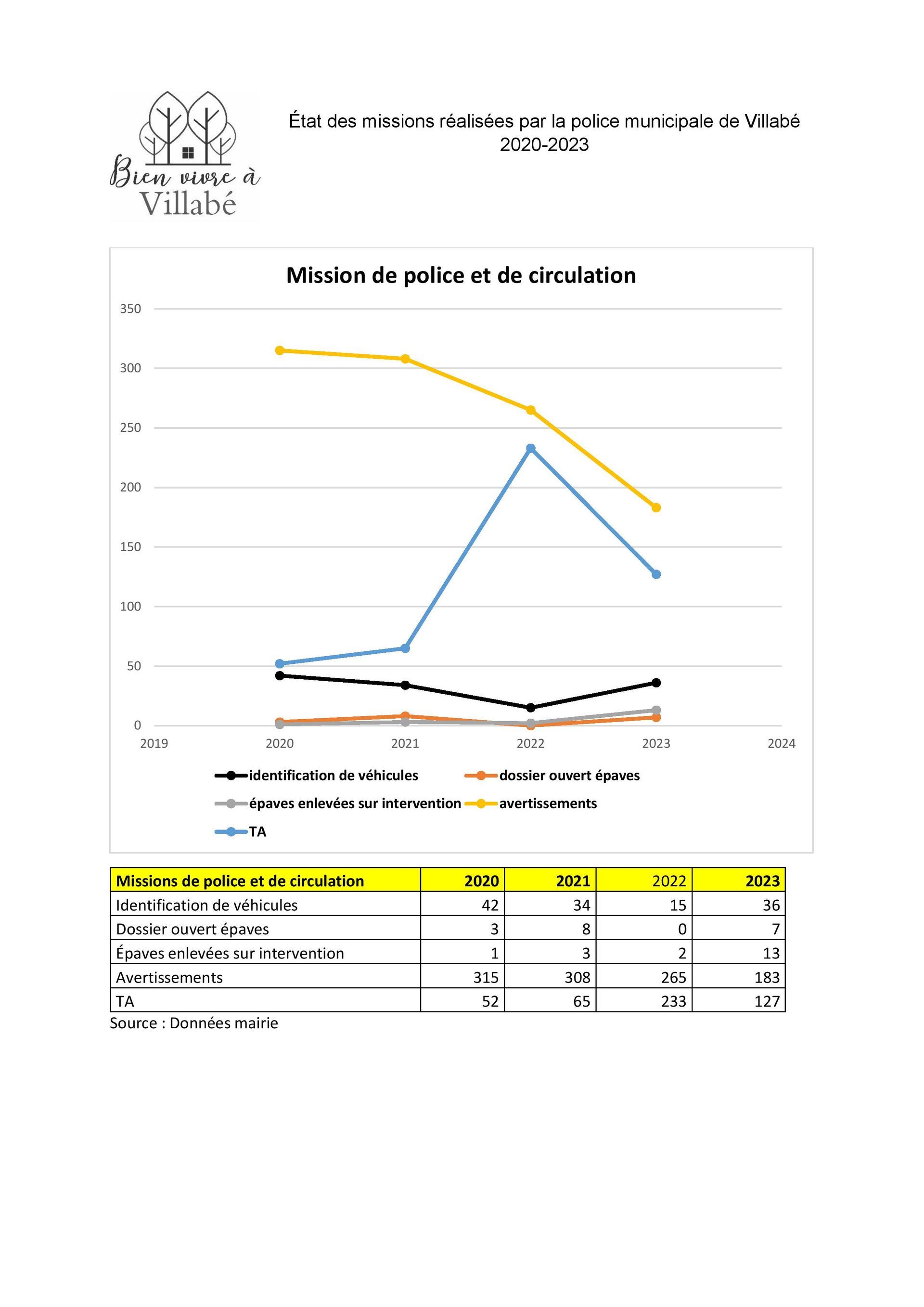 État des missions réalisées par la police municipale de Villabé de 2020 à 2024
