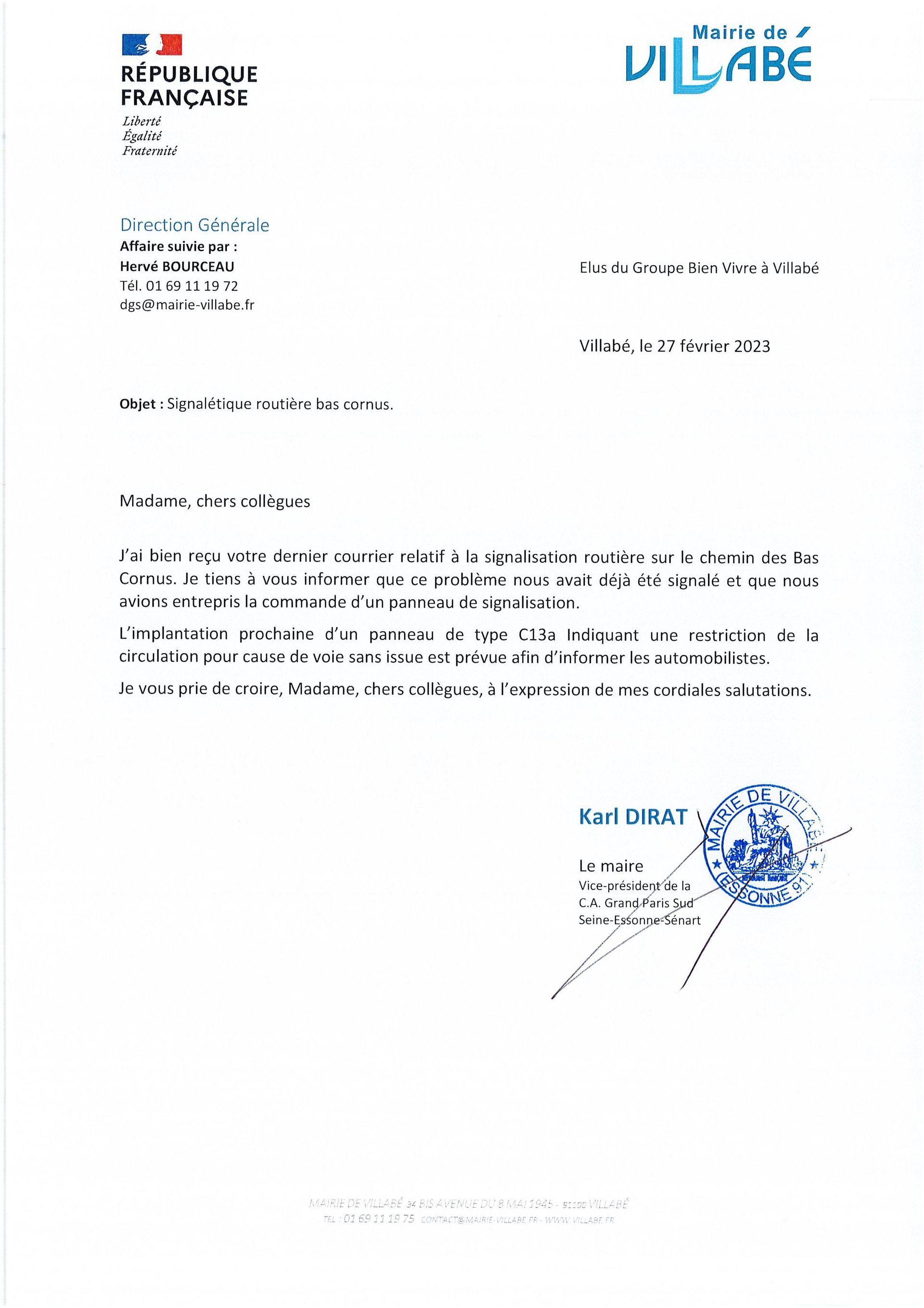 Il en a fallu du temps pour nous répondre, (demande transmise le 7 janvier, réponse reçue le 27 février) mais l’essentiel c’est que notre proposition soit suivie d’effet : un panneau signalant une voie sans issue va être installé au début du chemin des Bas Cornus, la commande a été faite… et c’est tant mieux si cela peut éviter des mésaventures à un certain nombre de conducteurs !