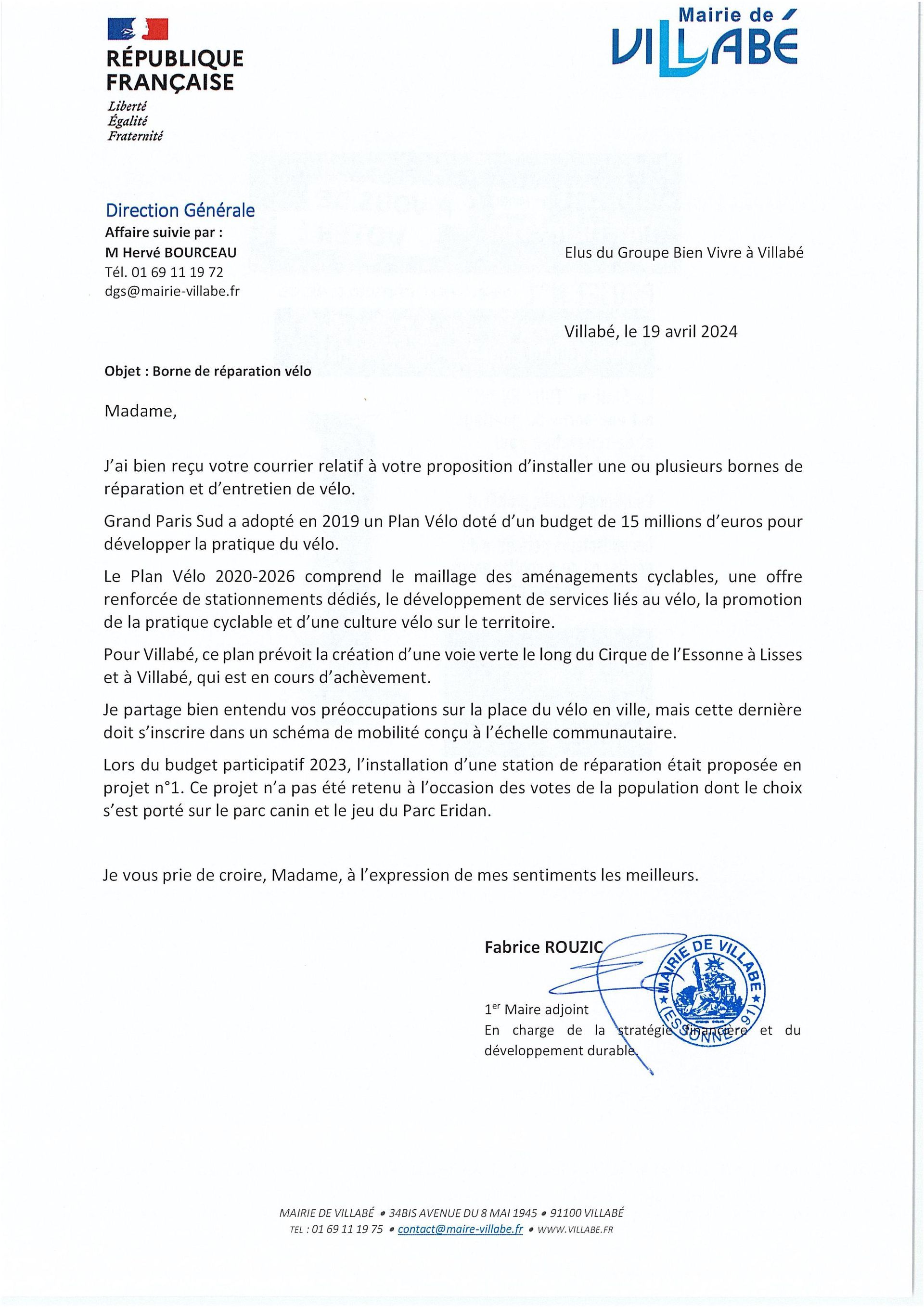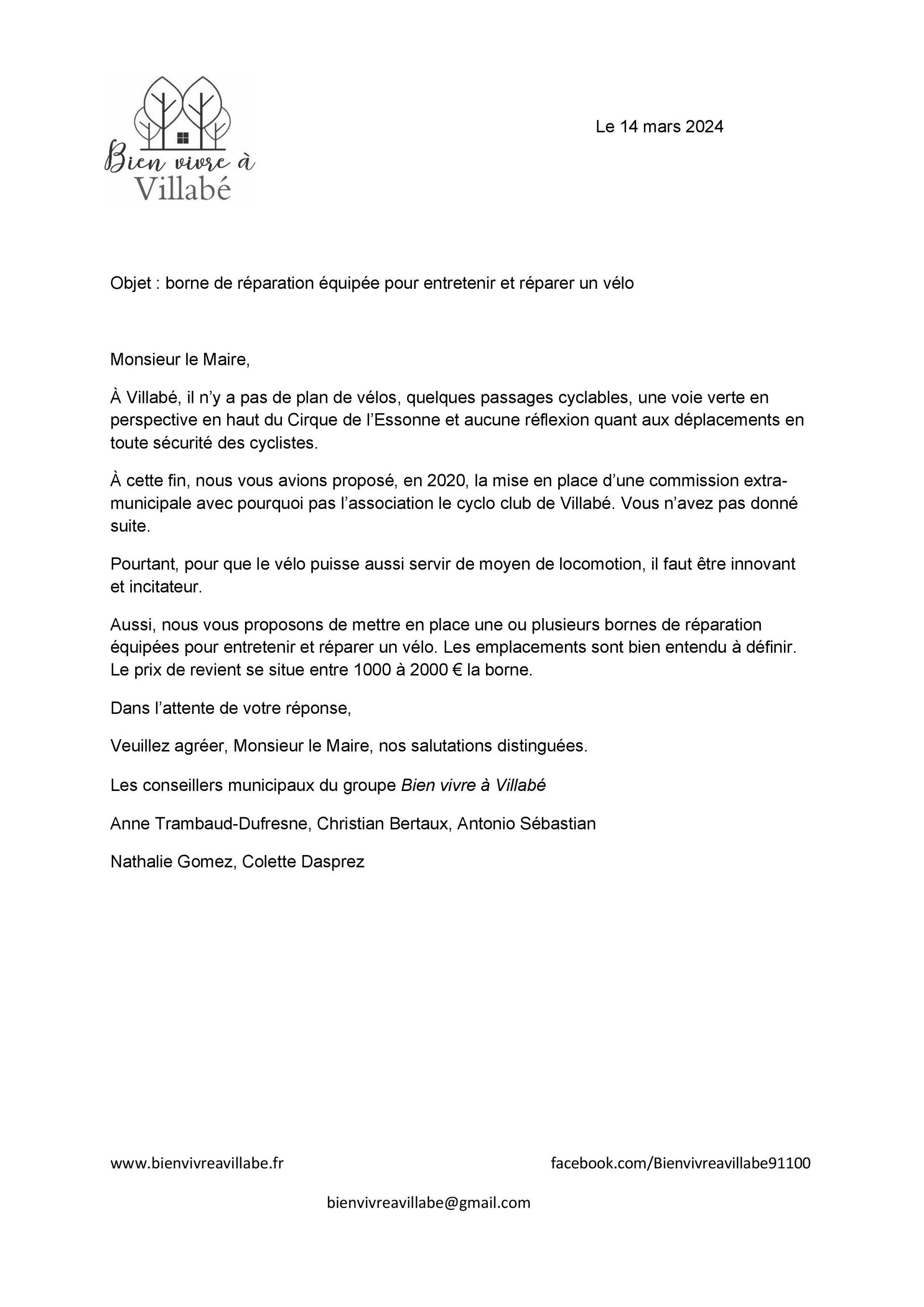 Borne entretien réparation vélo, pourquoi pas à Villabé ? Proposition rejetée par l'équipe municipale majoritaire !