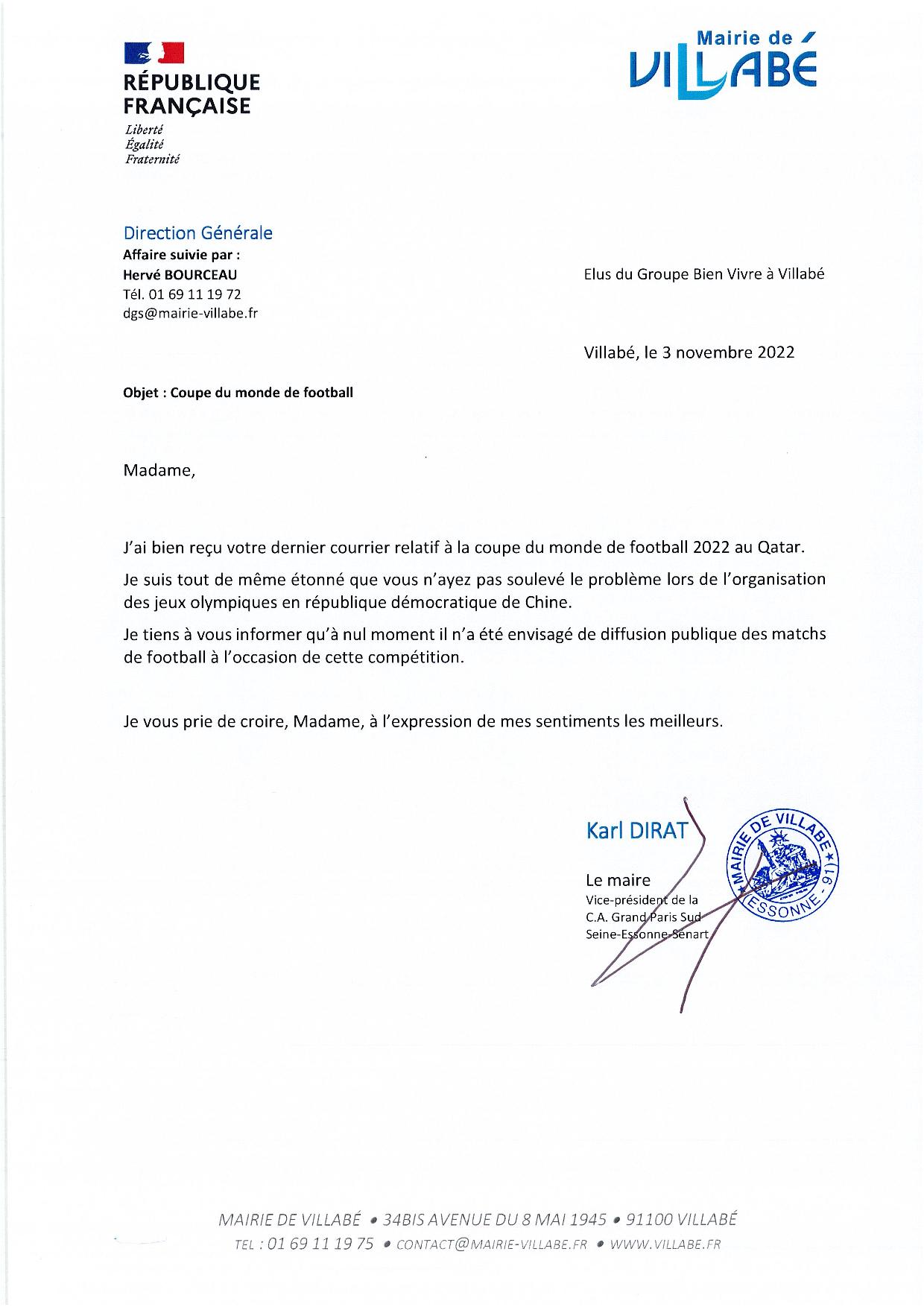 Boycott coupe du monde de foot Qatar 2022/ réponse du maire