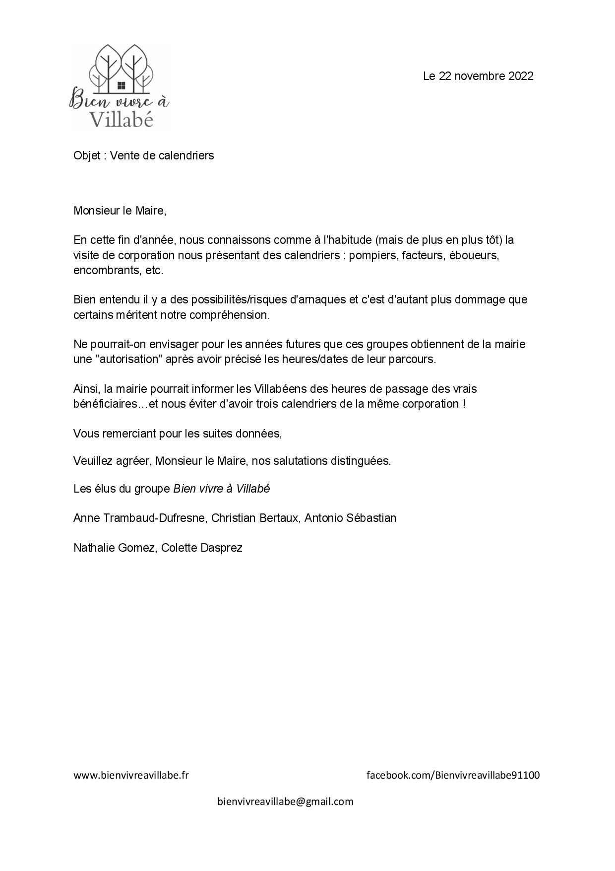 - le 22 novembre, il est proposé au maire d’envisager une « autorisation » de la mairie pour la vente des calendriers des corporations qui font du porte à porte en fin d’année.