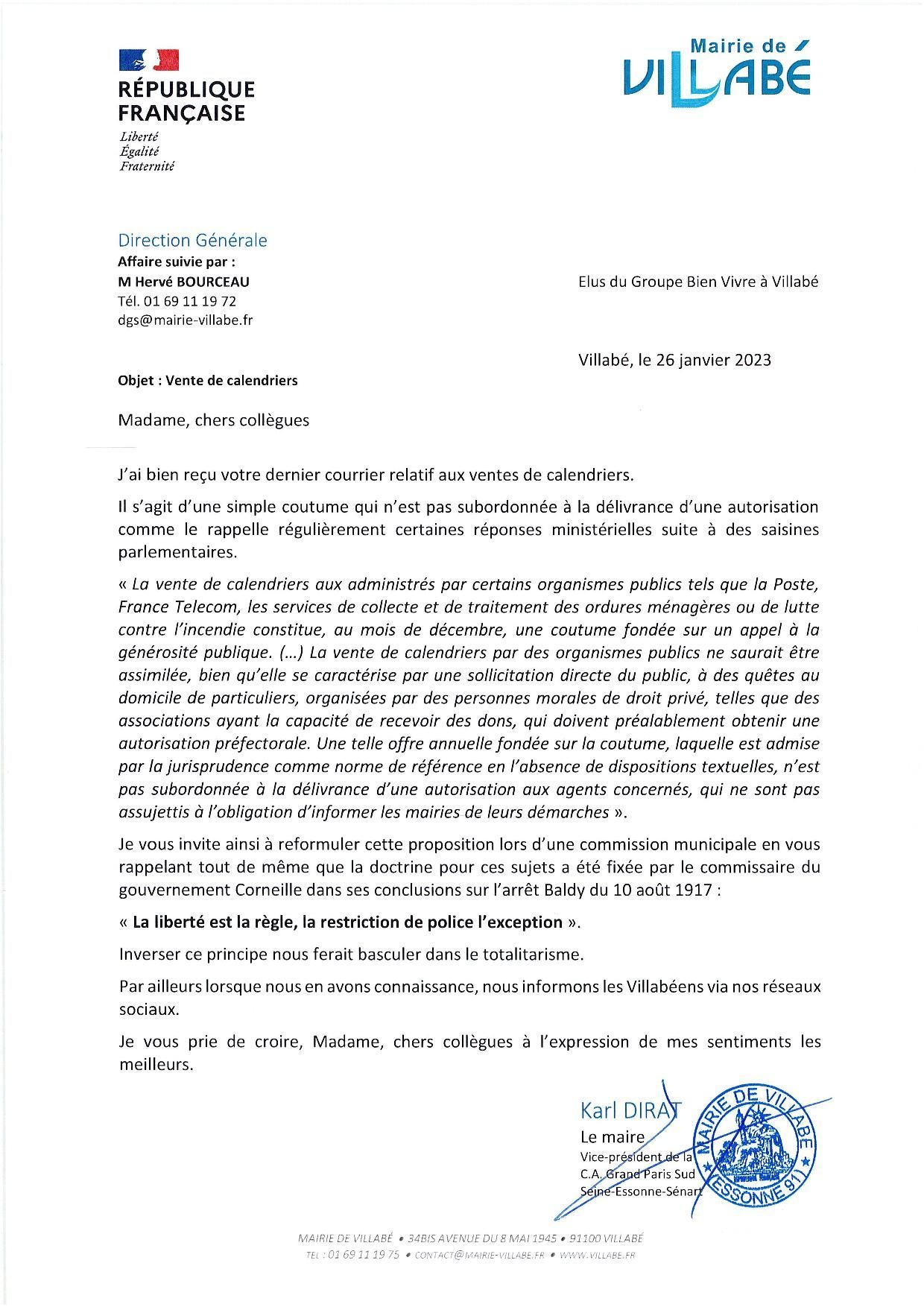 Le 26 janvier, nous recevons enfin une réponse avec un mois de retard si l’on s’en réfère au règlement du Conseil municipal.