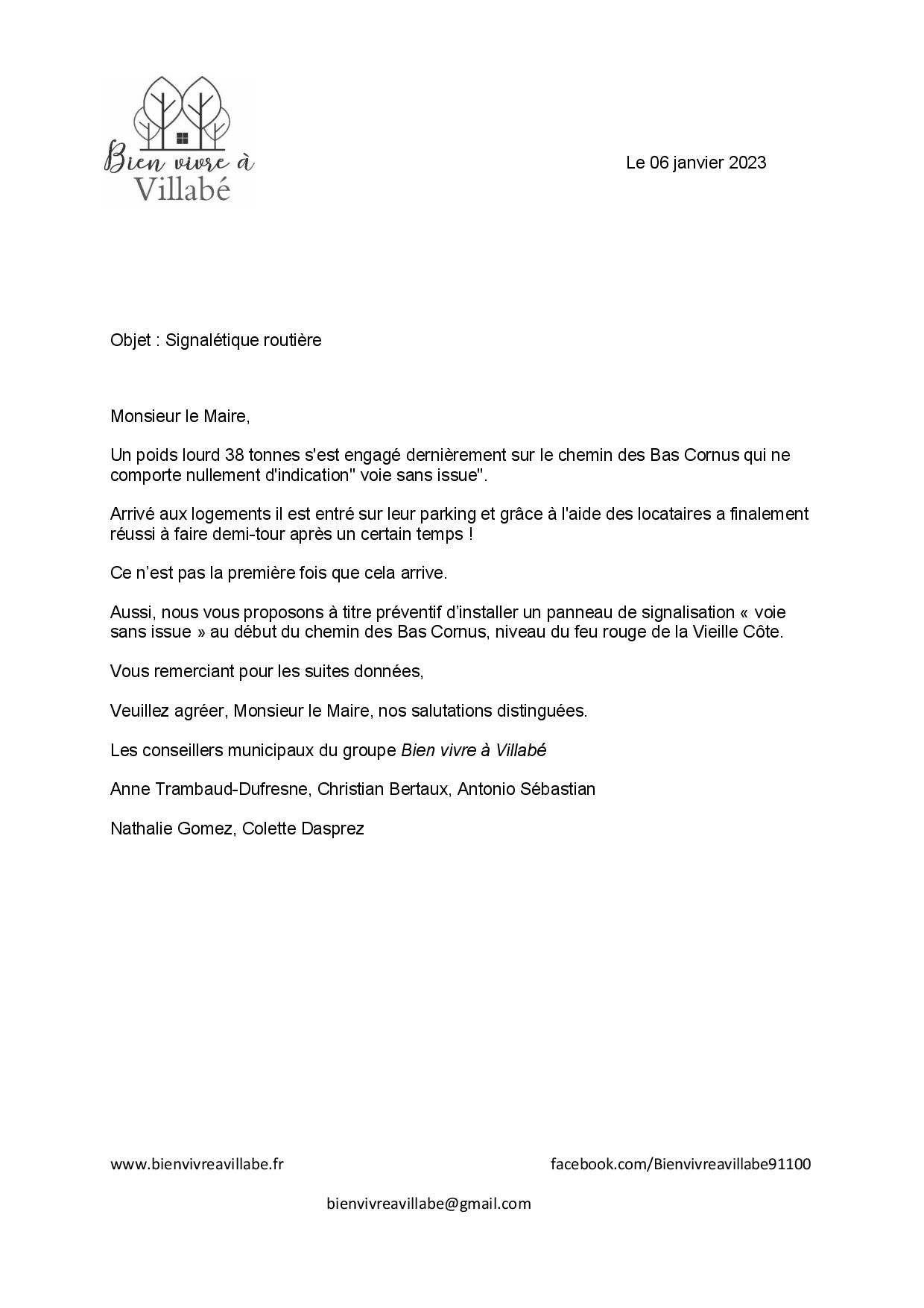 Proposition de Bien vivre à Villabé au maire