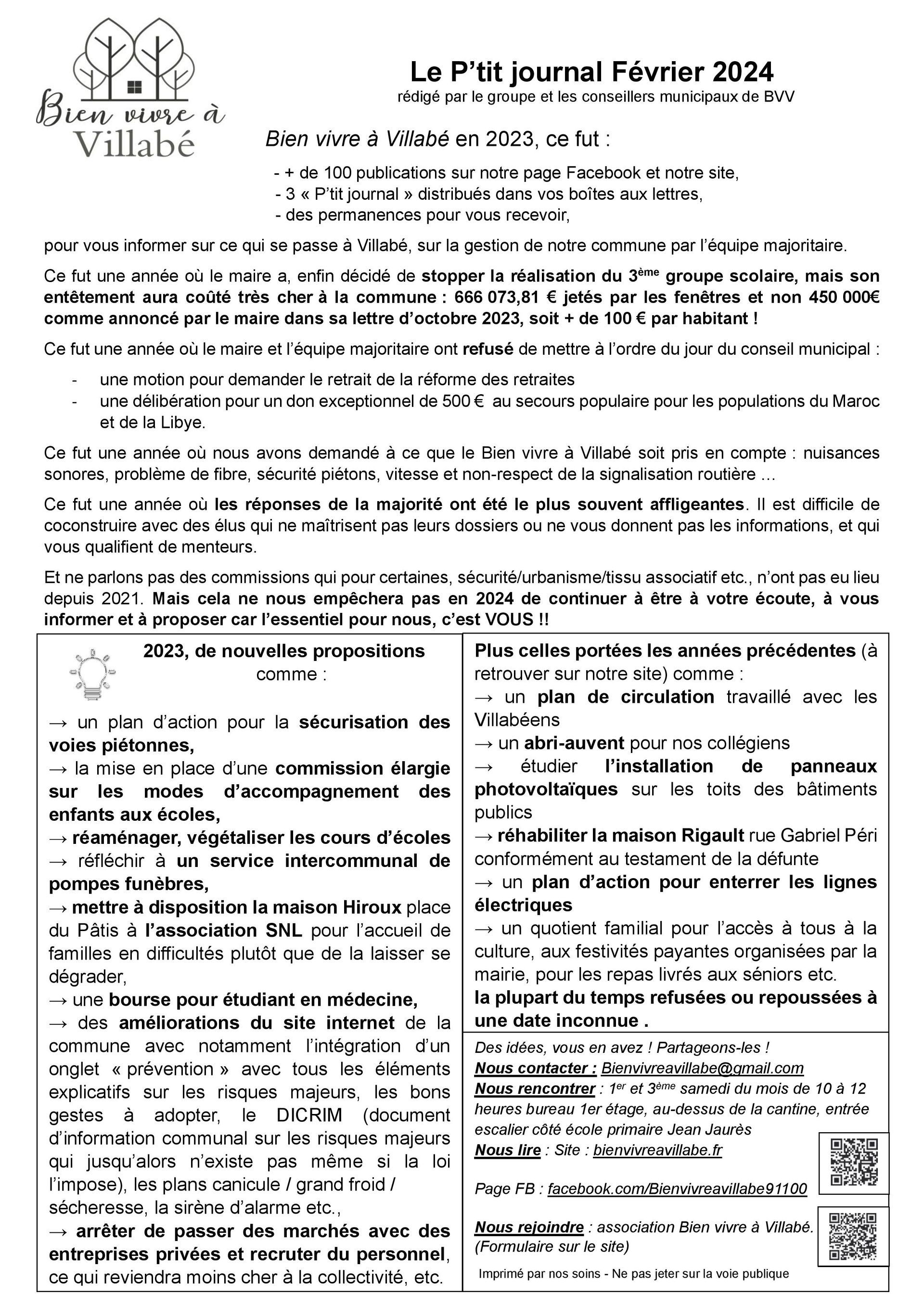Bien vivre à Villabé est en cours de distribution dans vos boîtes aux lettres. Il est fait pour vous informer en toute transparence, car, pour nous l'essentiel, c'est