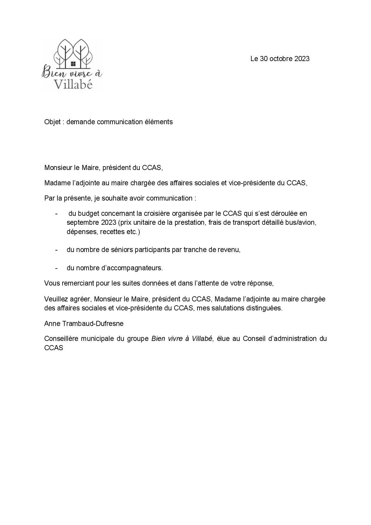 Et attardons-nous sur la croisière adriatique. Dans le rapport d’orientation il est écrit coût = 32 066 € mais aucune indication quant au montant de la participation financière des séniors participants. Le courrier adressé au CCAS le 30 octobre 2023 (en pièce jointe) est resté à ce jour sans réponse. Alors, oui, nous questionnons cette croisière : le CCAS ne devrait pas être une agence de voyage.