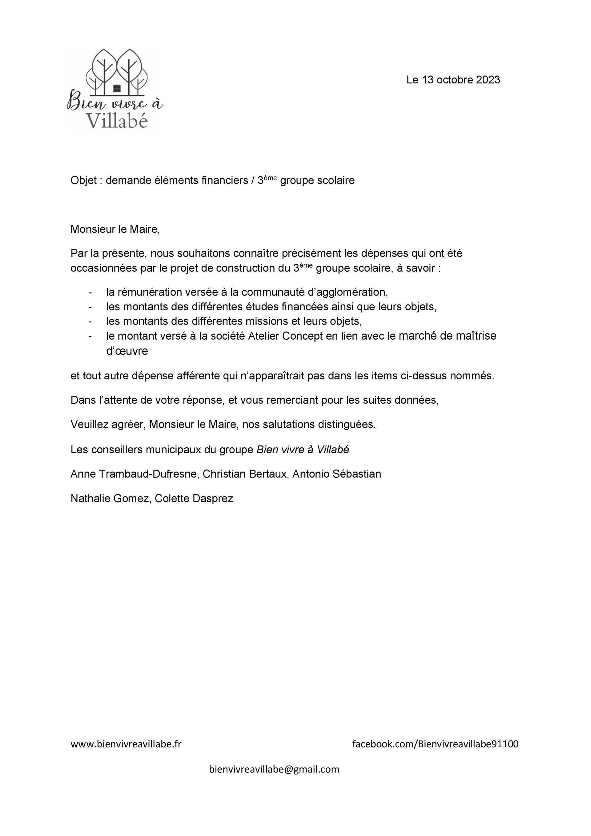 À propos du 3ème groupe scolaire, le maire indique dans sa lettre d’octobre 2023 :