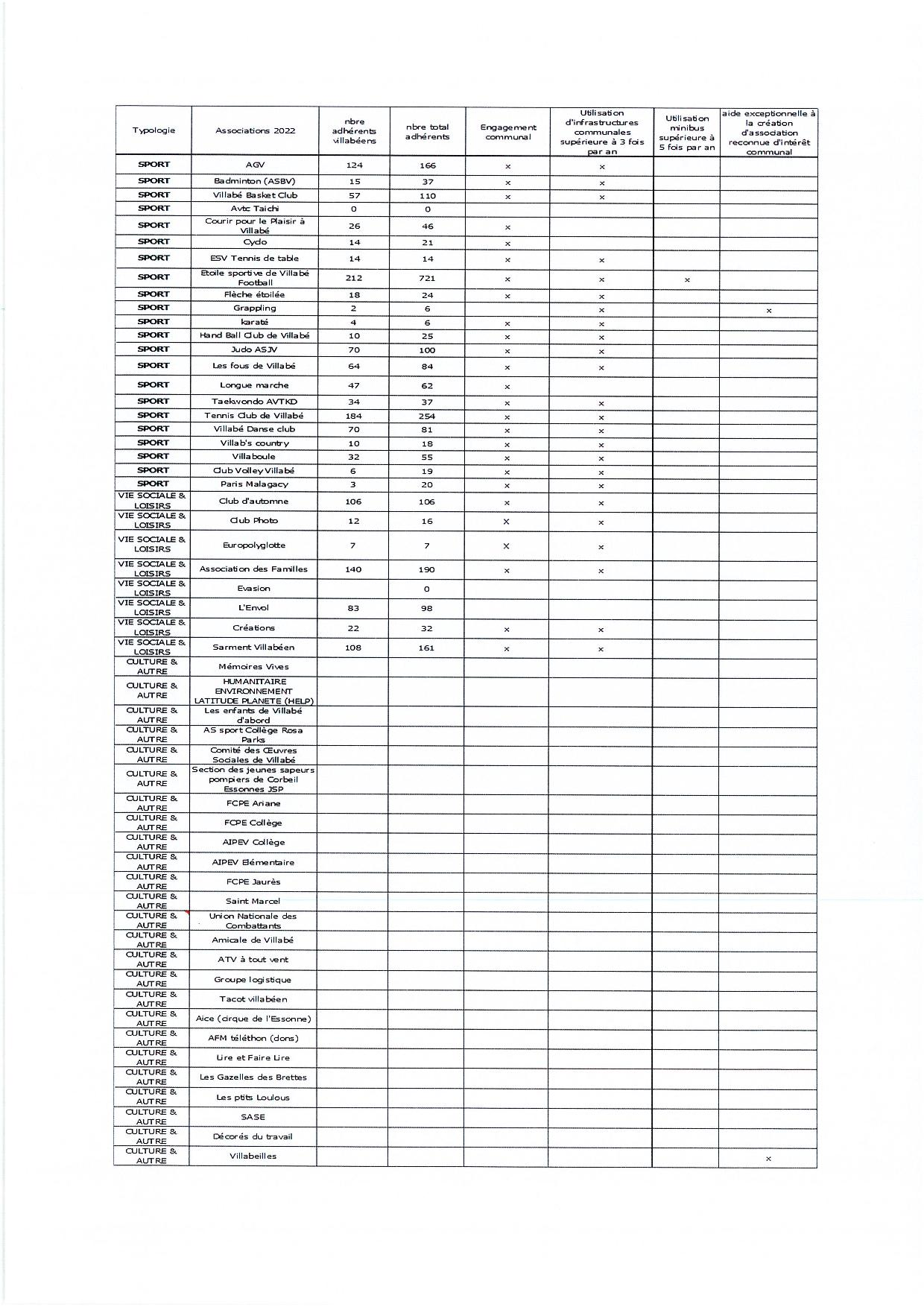 - Toutes les autres associations pour lesquelles le nombre d’adhérents nous a été communiqué, de + de 50 membres, ont plus de 50% de leurs adhérents domiciliés à Villabé