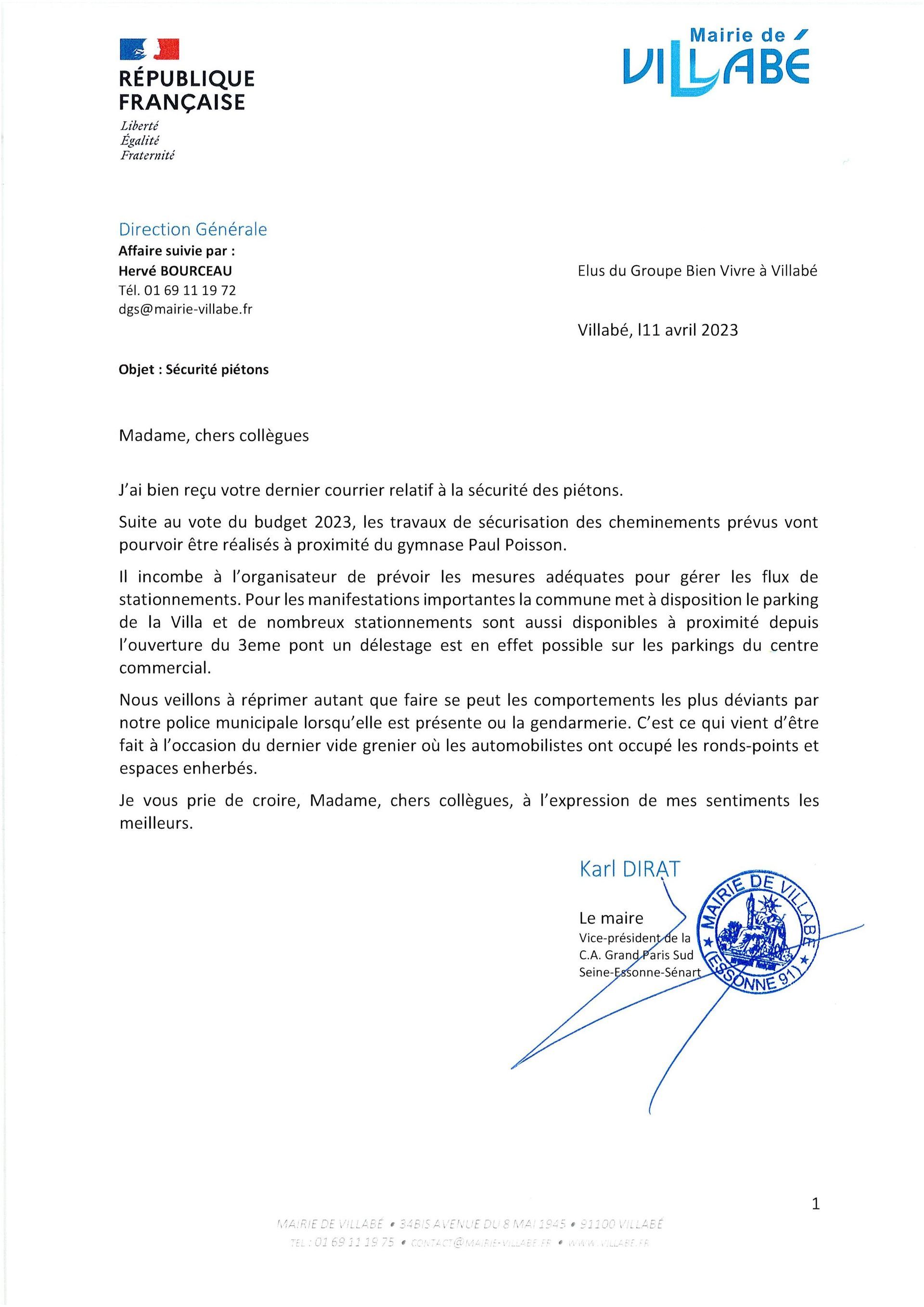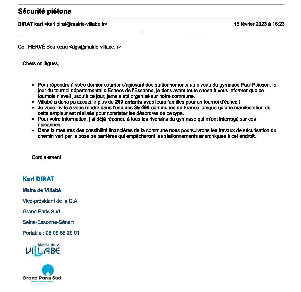 Avec un peu de retard (25 jours), mais cela devient une habitude, une réponse du maire en date du 11 avril 2023.