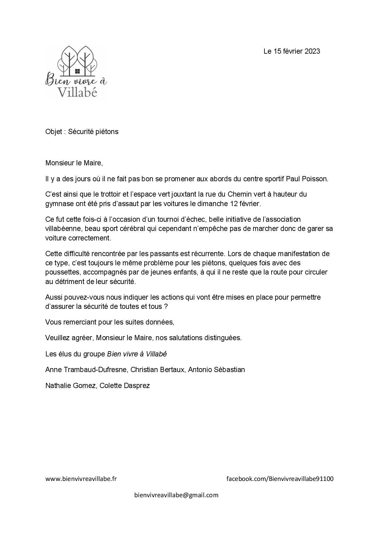 Bien vivre à Villabé ne conteste pas ce type de manifestation, bien au contraire, à condition que la sécurité de tous soit assurée.