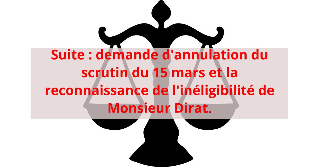 Information: une audience publique est fixée le mardi 22 septembre au tribunal administratif de Versailles concernant notre demande d'annulation du scrutin du 15 mars et la reconnaissance de l'inéligibilité de Monsieur Dirat.