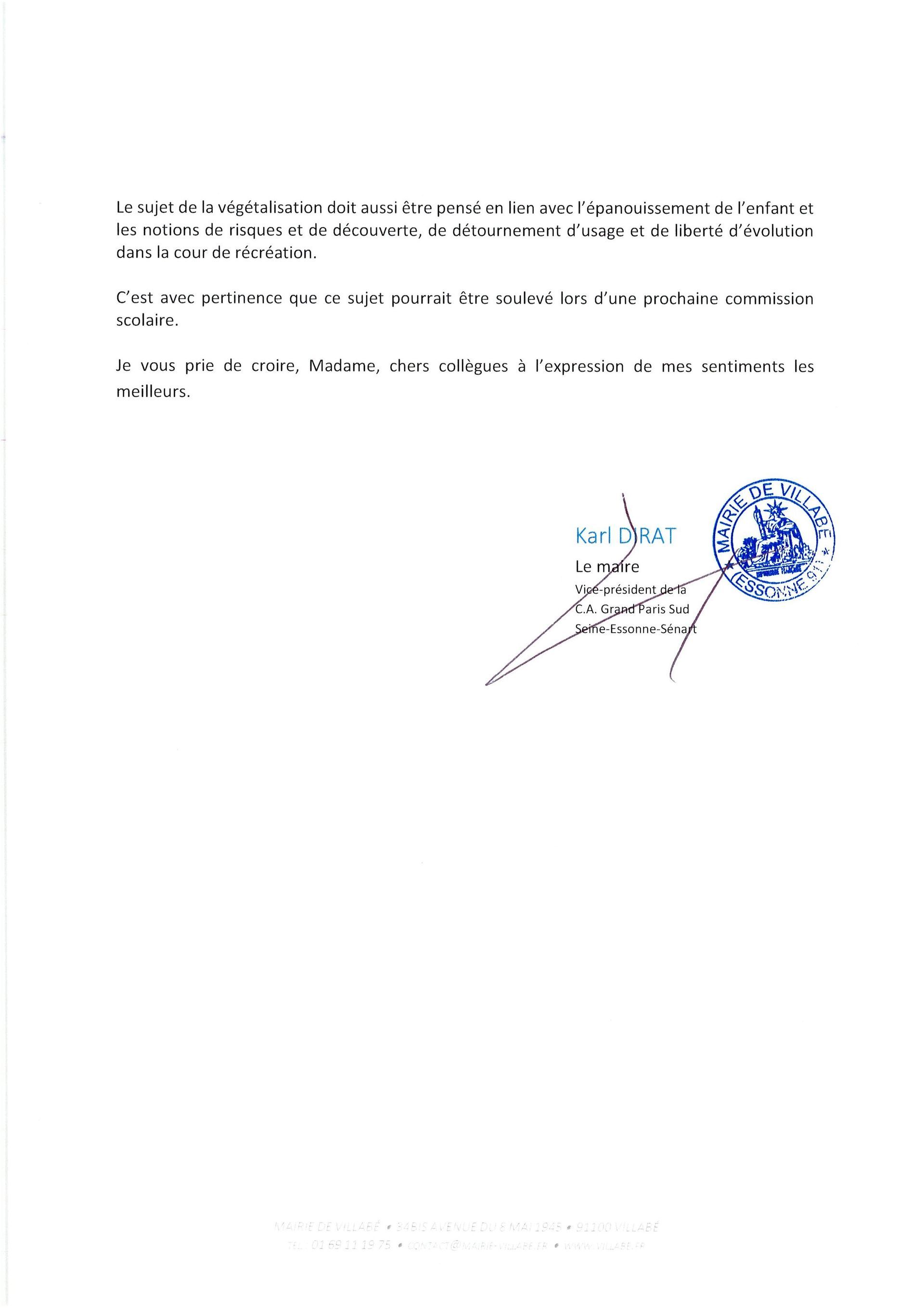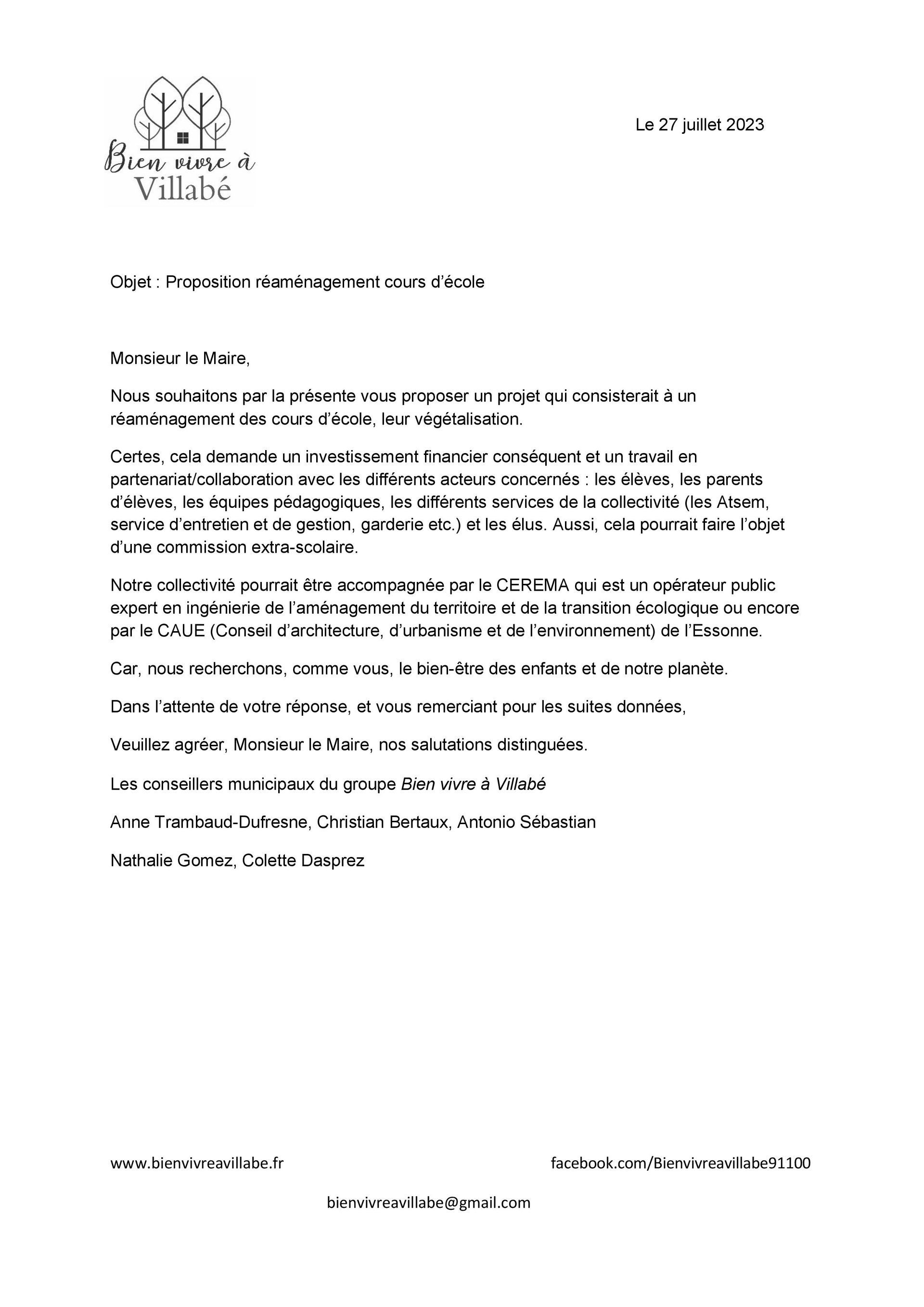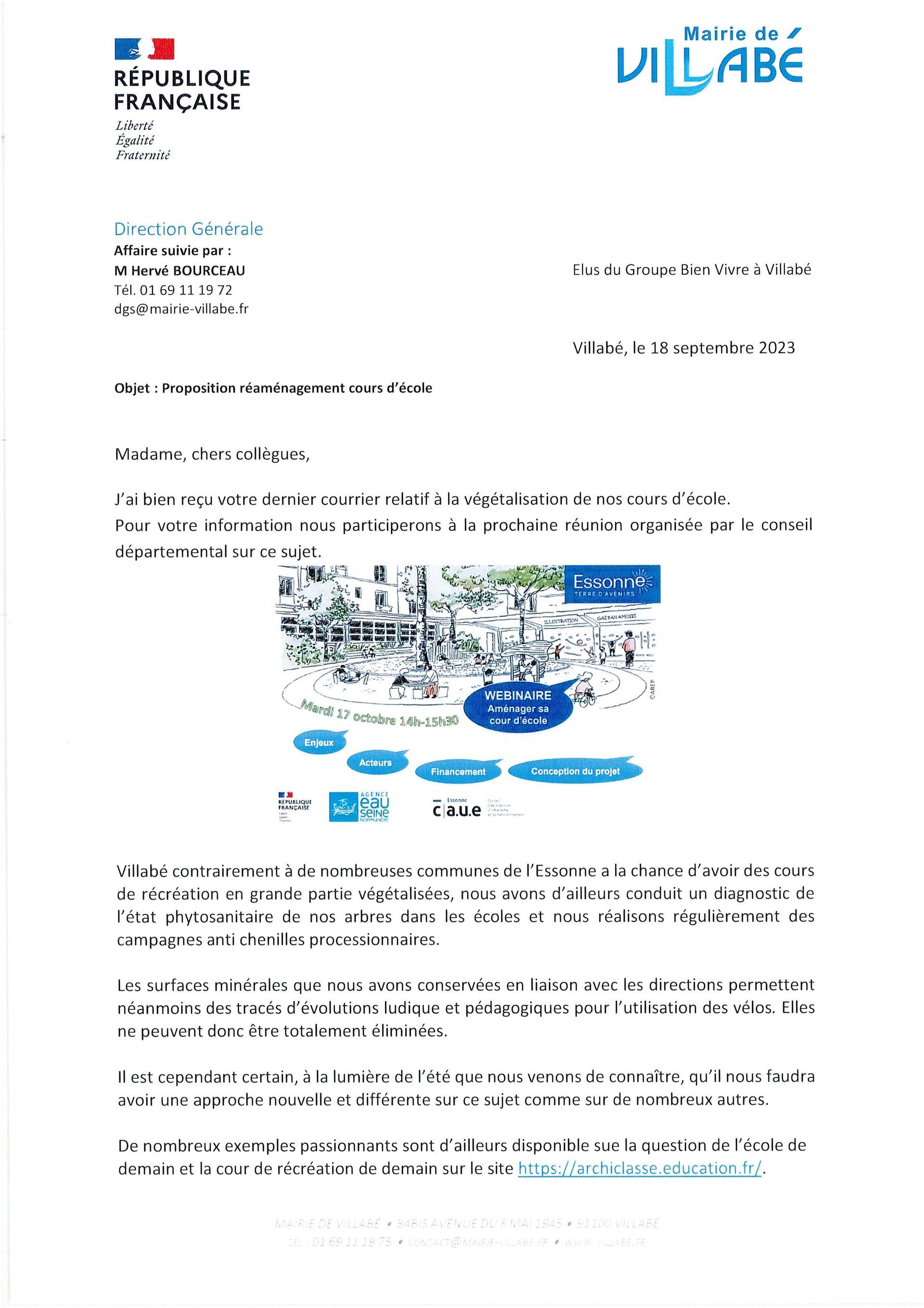 Végétaliser, réaménager les cours d’école, une proposition de Bien vivre Villabé … et une réponse du maire …
