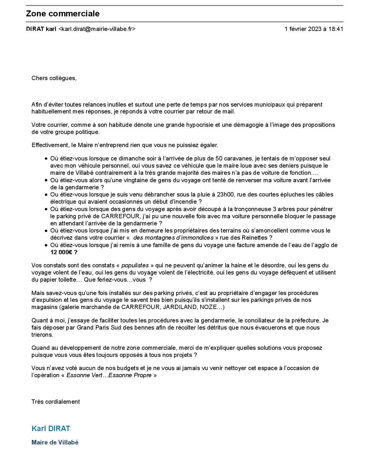 Qui a voulu devenir maire de Villabé et grand défenseur des lois ?? Comment se fait-il qu’il ne puisse faire appliquer la loi ? Pourquoi parler d’une verbalisation datant de 2018 ? Depuis, plus rien ?