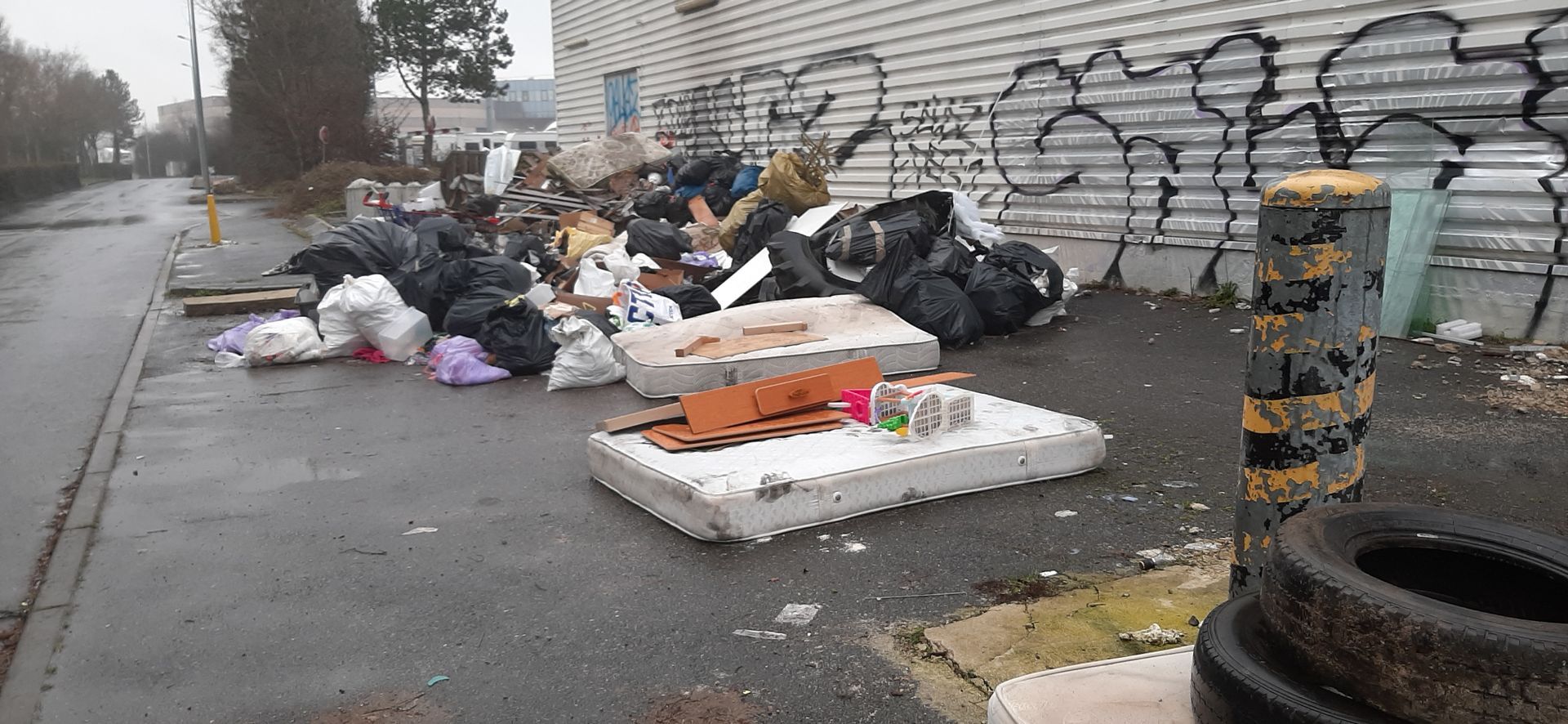 Zone commerciale à l’agonie : une montagne d’immondices, des déchets sur les bords des routes …et les gens du voyage qui sont de retour !